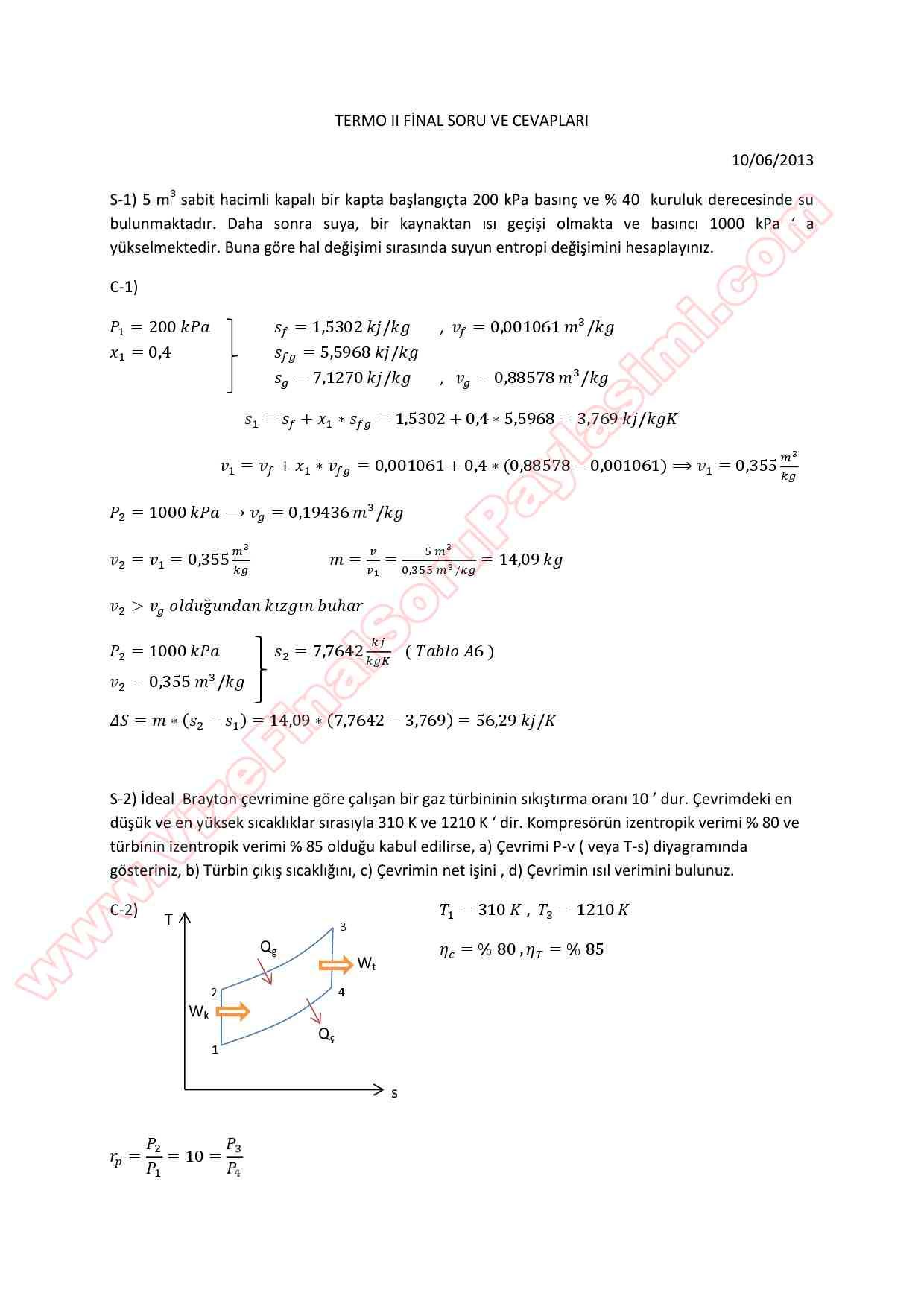 Termodinamik -2 Final Soruları ve Cevapları 21-06-2015, 14:58