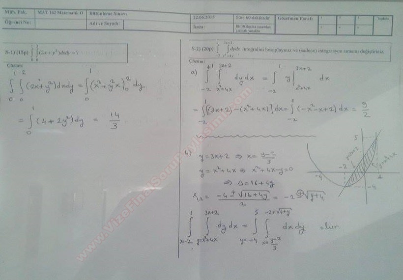 Matematik -2 Bütünleme Soruları ve Cevapları -2015