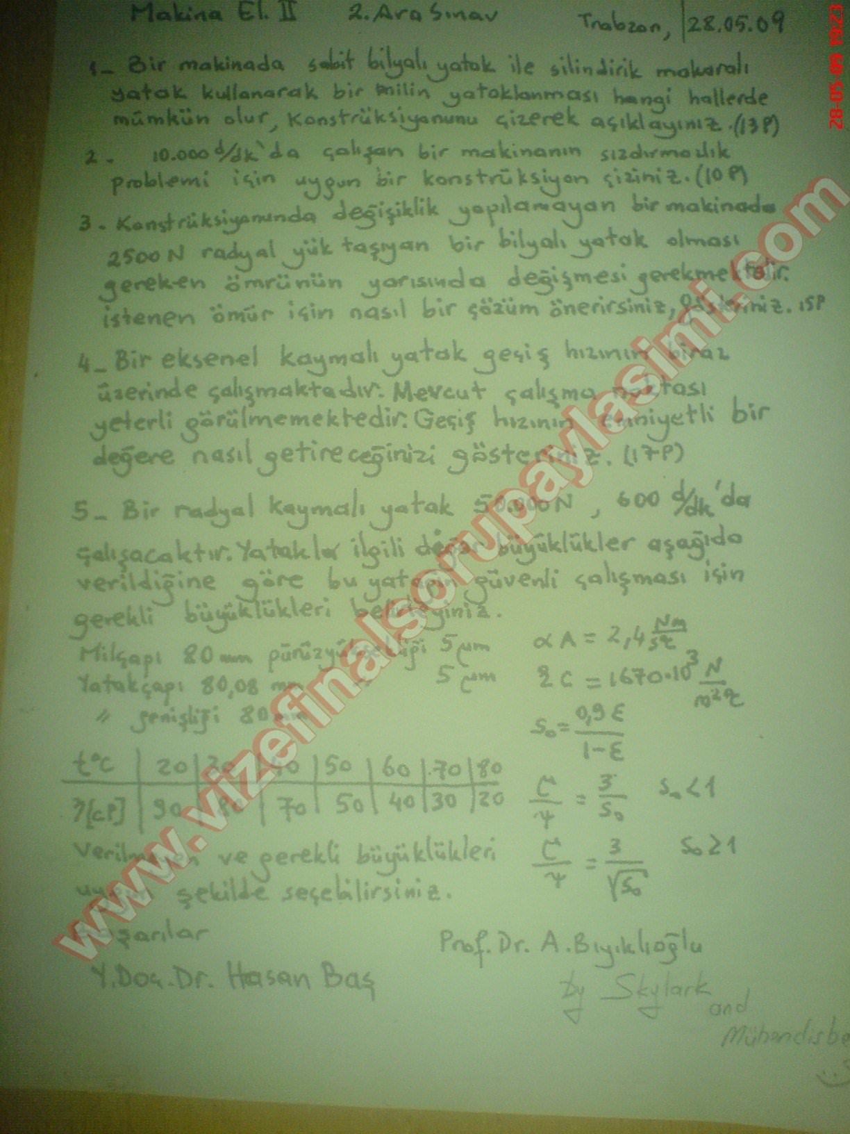 Vize ve Final Soruları / Karadeniz Teknik Üniversitesi / Makine Elemanları -2 Dersi