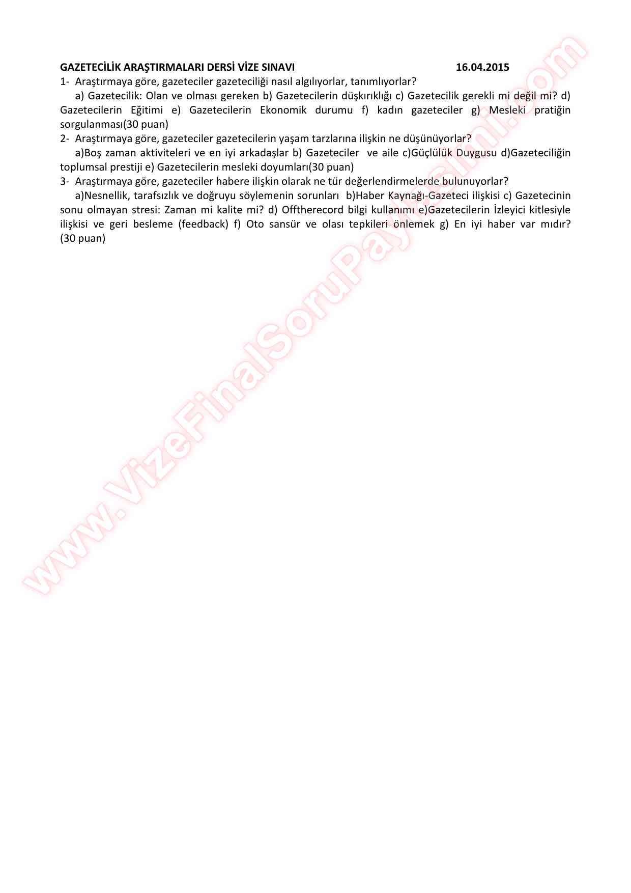 Gazetecilik Araştırmaları Final Soruları 30-06-2015, 23:18