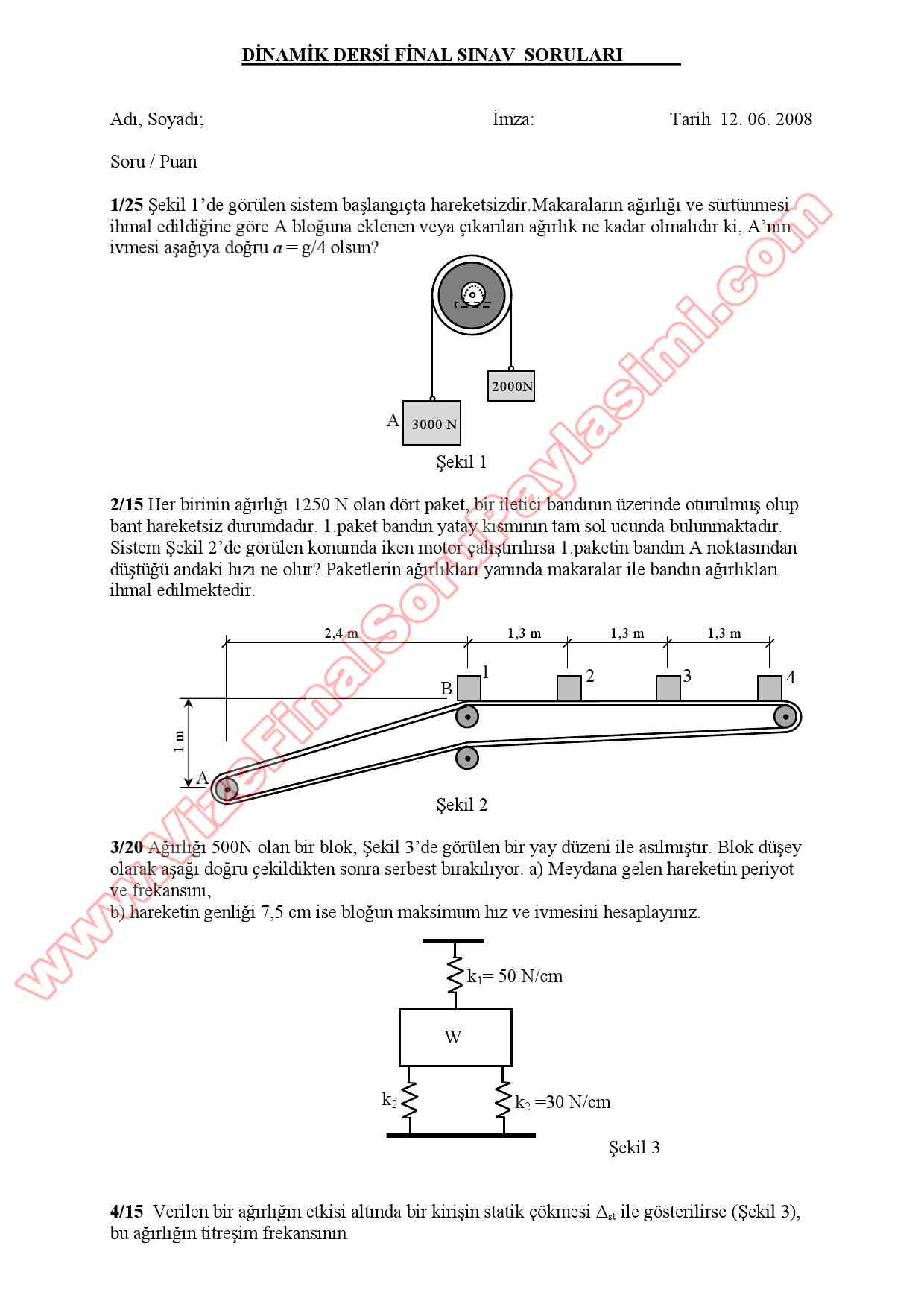 Dinamik Dersi Final Soruları 26-05-2015, 03:30