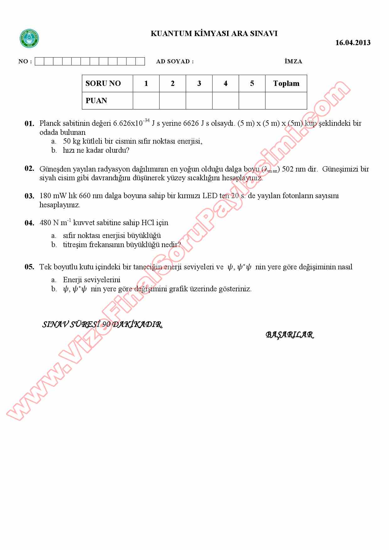 Kuantum Kimyası Vize Soruları ve Cevapları 6-07-2015, 09:23