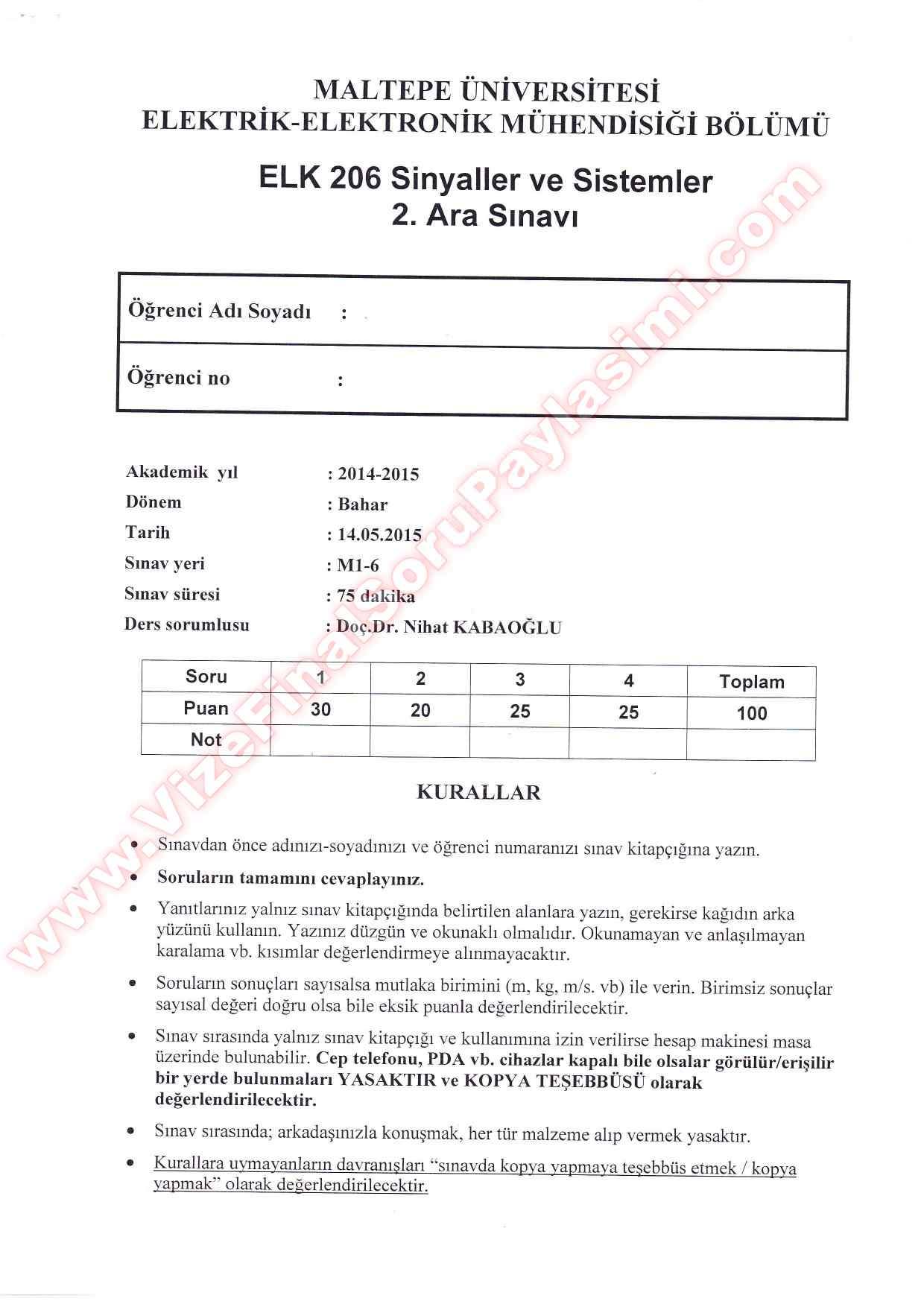 Fırat Üniversitesi Sinyaller ve Sistemler Dersi Vize-2 Soruları 18-07-2014, 19:43