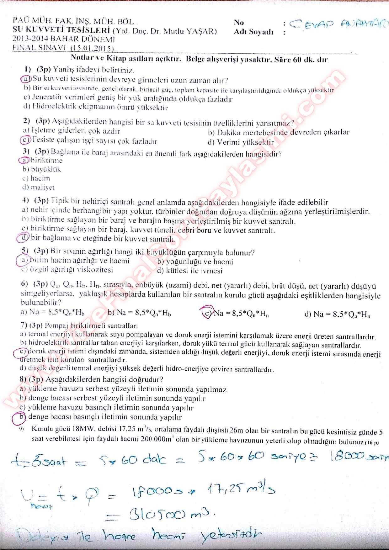 Su Kuvveti Tesisleri Final Soruları Ve Cevapları