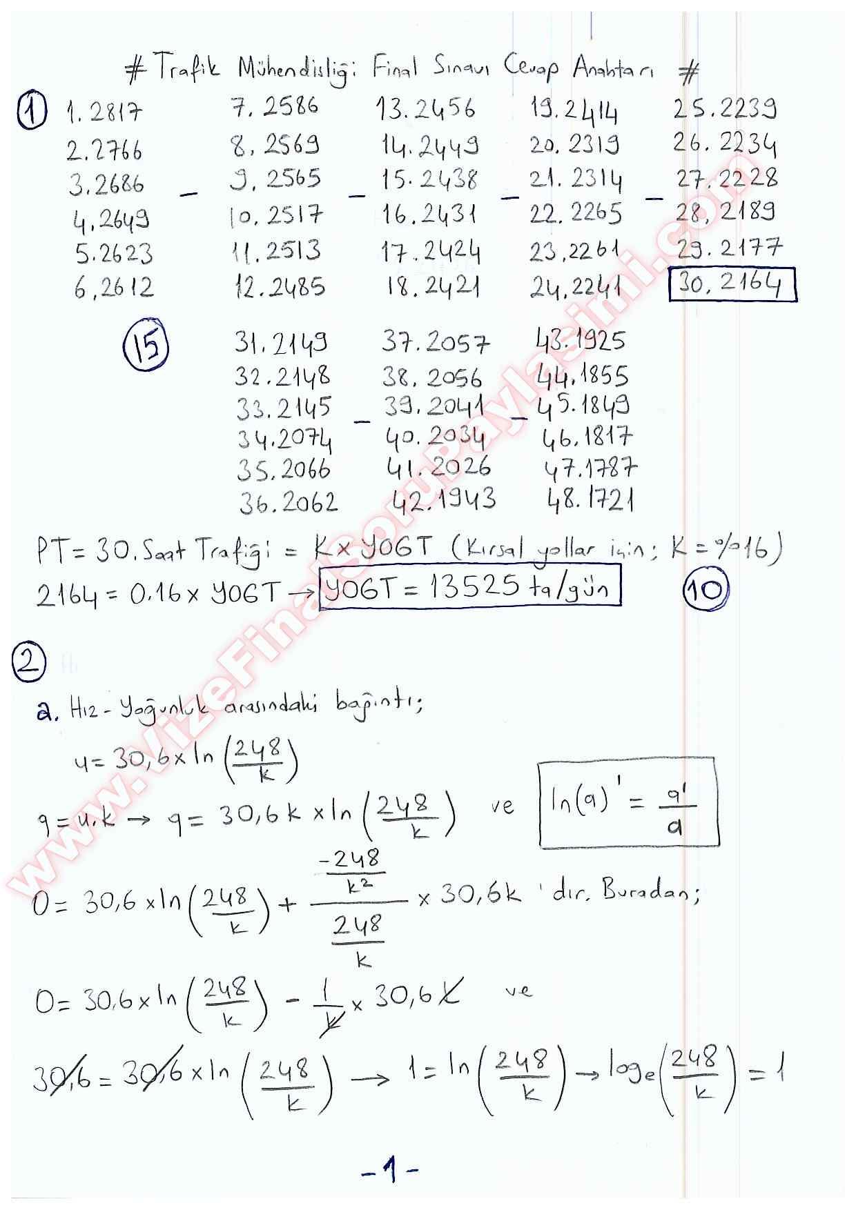 Trafik Mühendisliği Final Cevapları 2015