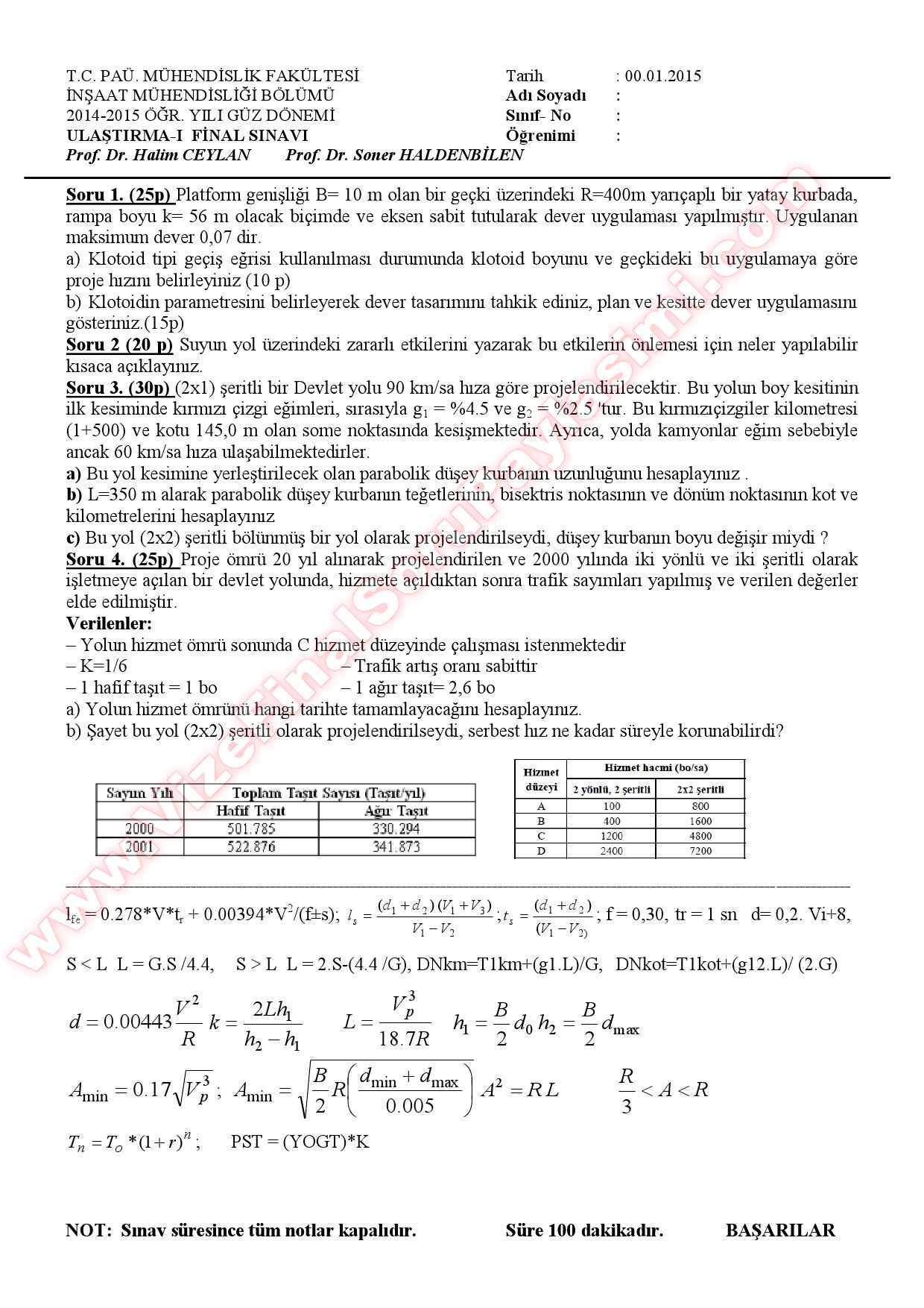 Vize ve Final Soruları / Pamukkale Üniversitesi / Ulaştırma -1
