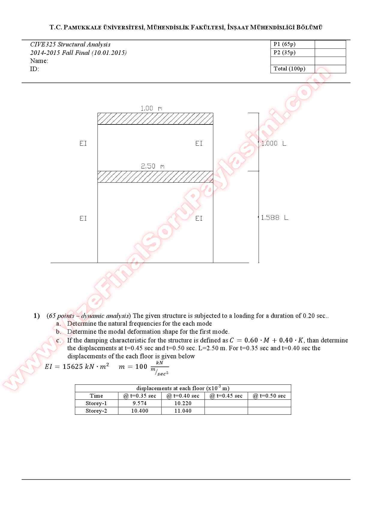 Vize ve Final Soruları / Pamukkale Üniversitesi / Yapı Analizi Dersi