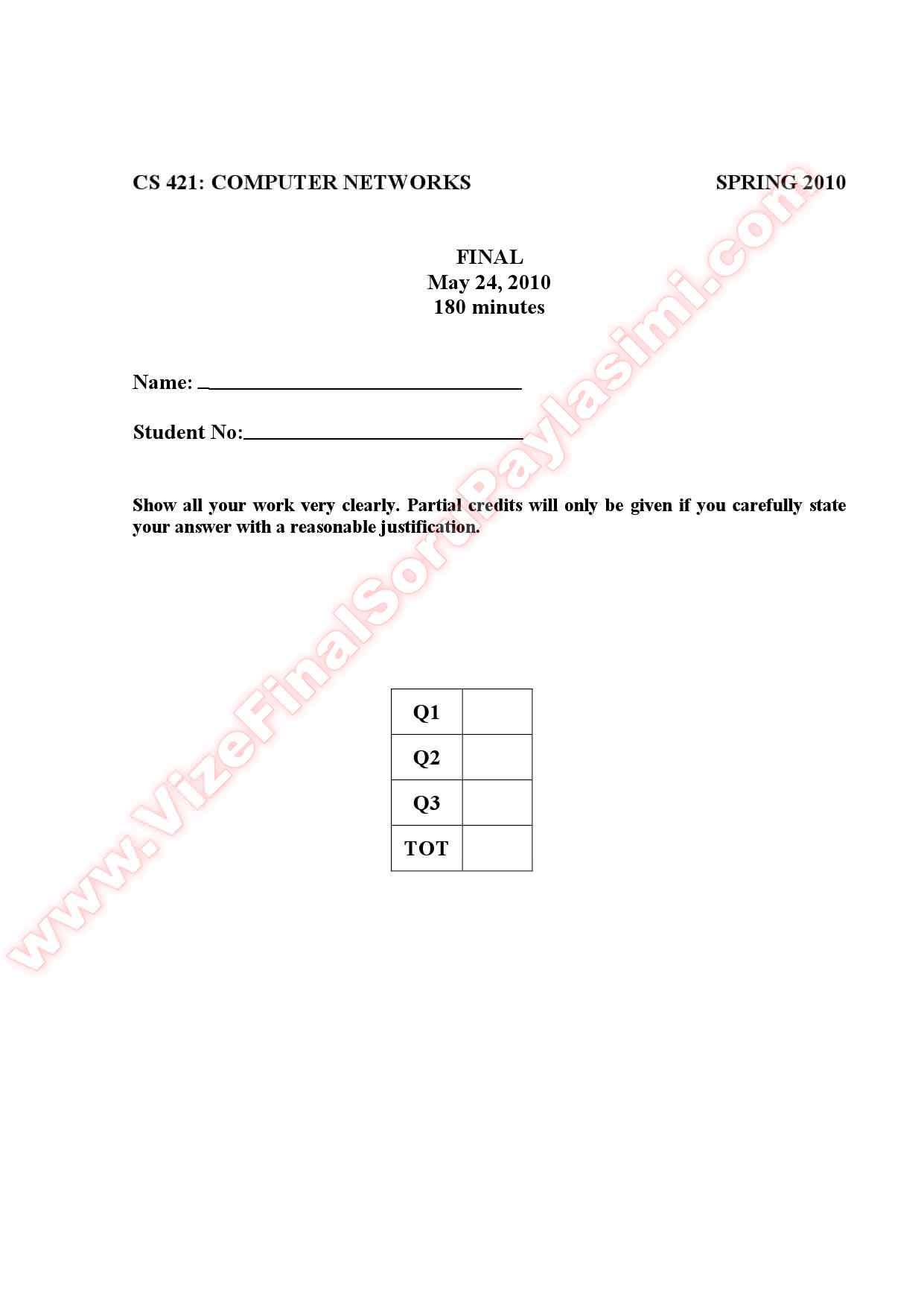 Vize ve Final Soruları / Bilkent Üniversitesi / Computer Networks Lesson