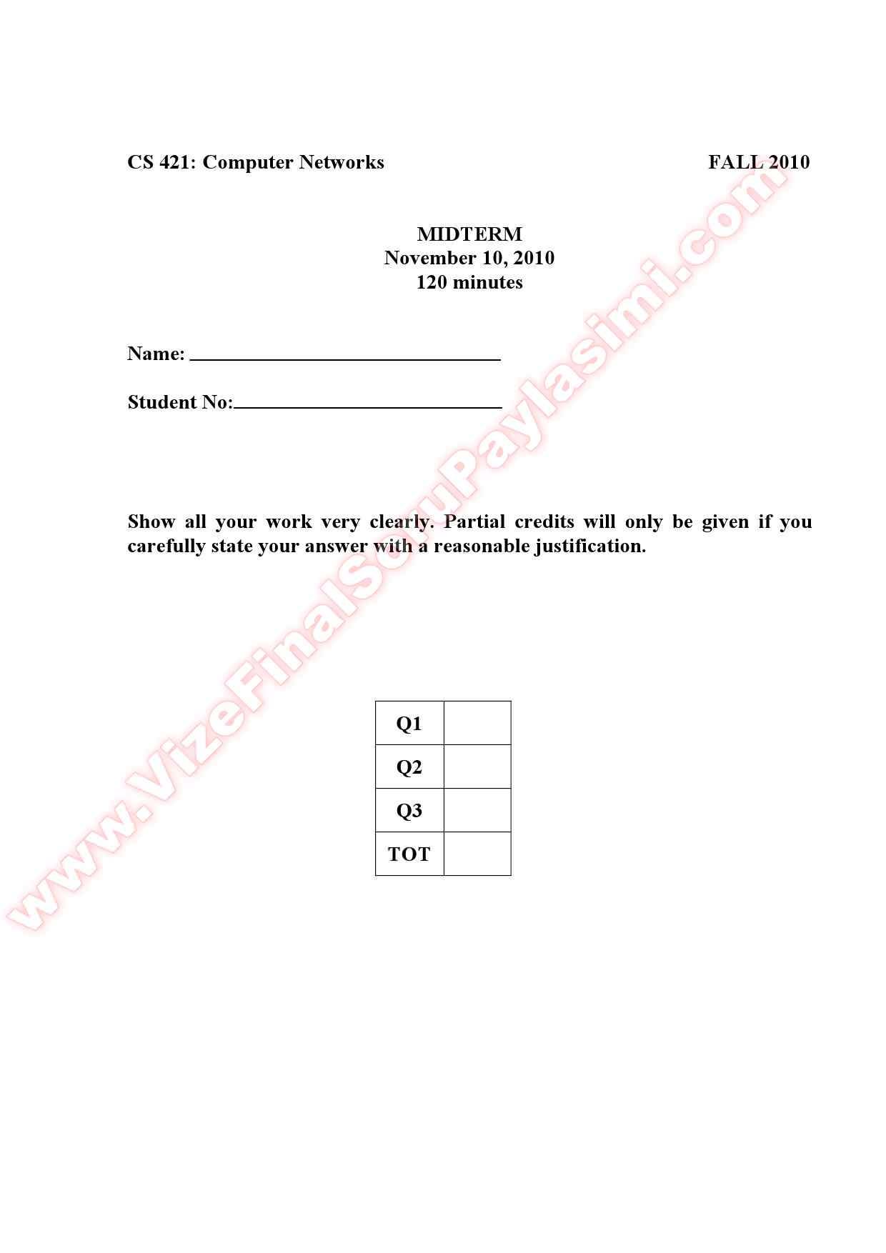 Vize ve Final Soruları / Bilkent Üniversitesi / Computer Networks Lesson