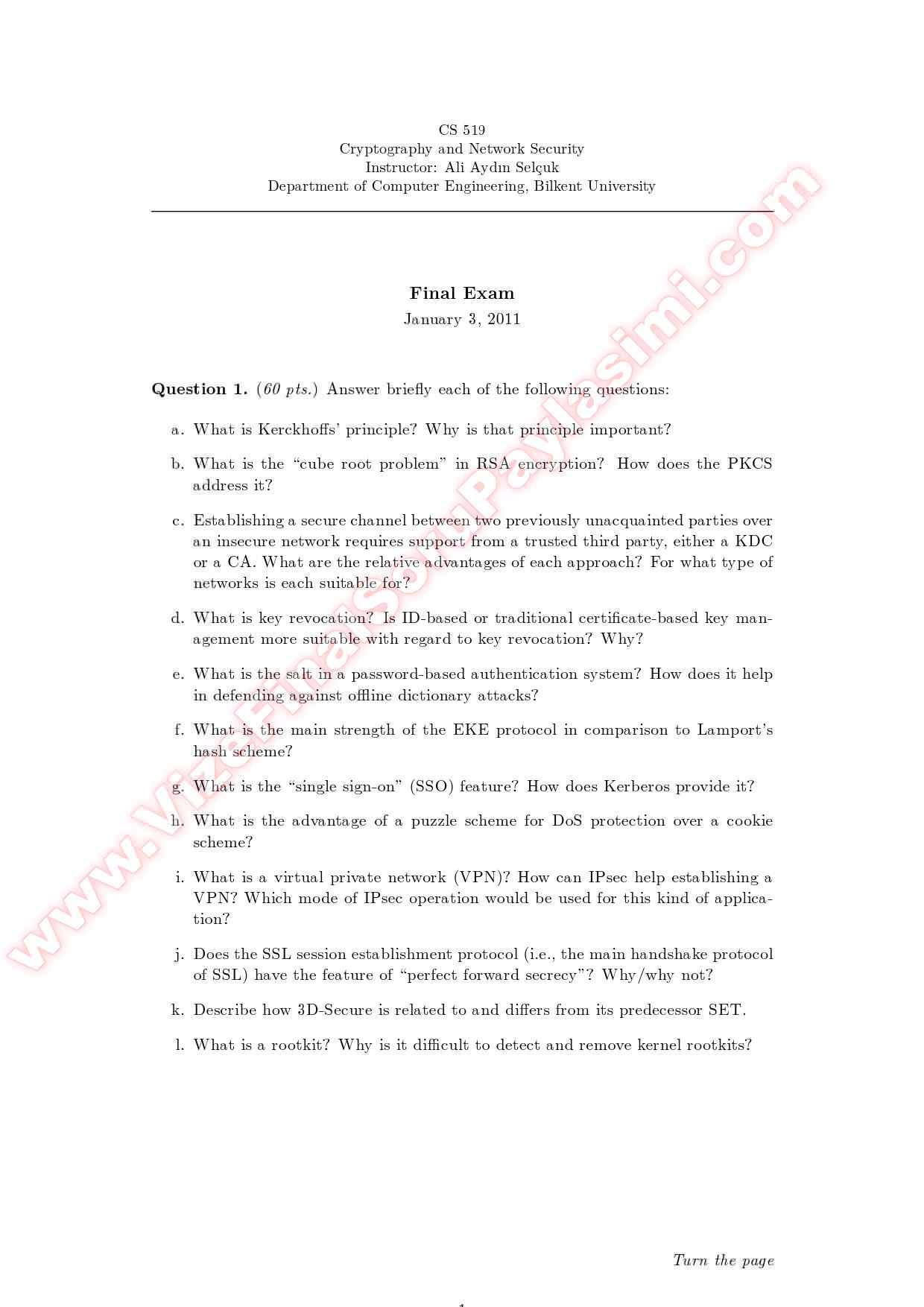 Vize ve Final Soruları / Bilkent Üniversitesi / Cryptography and Network Security