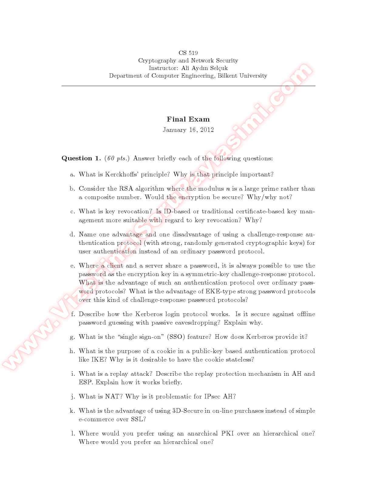 Vize ve Final Soruları / Bilkent Üniversitesi / Cryptography and Network Security