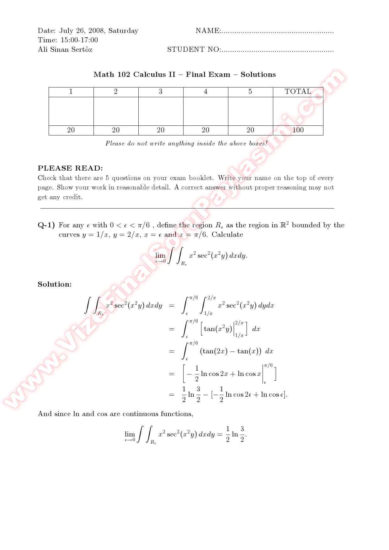 Calculus2 Final Solutions - 2010 11-07-2015, 10:11