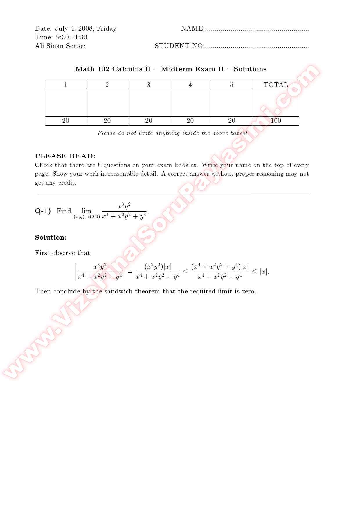calculus2 midterm Solutions 2008 GERİ DÖN-