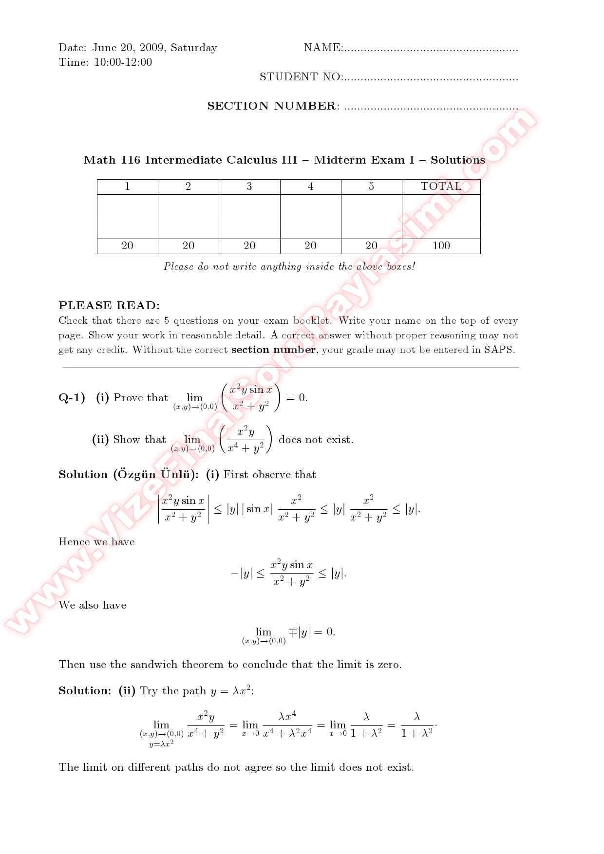 Intermediate Calculus3 Midterm2 Solutions -2009 11-07-2015, 12:07