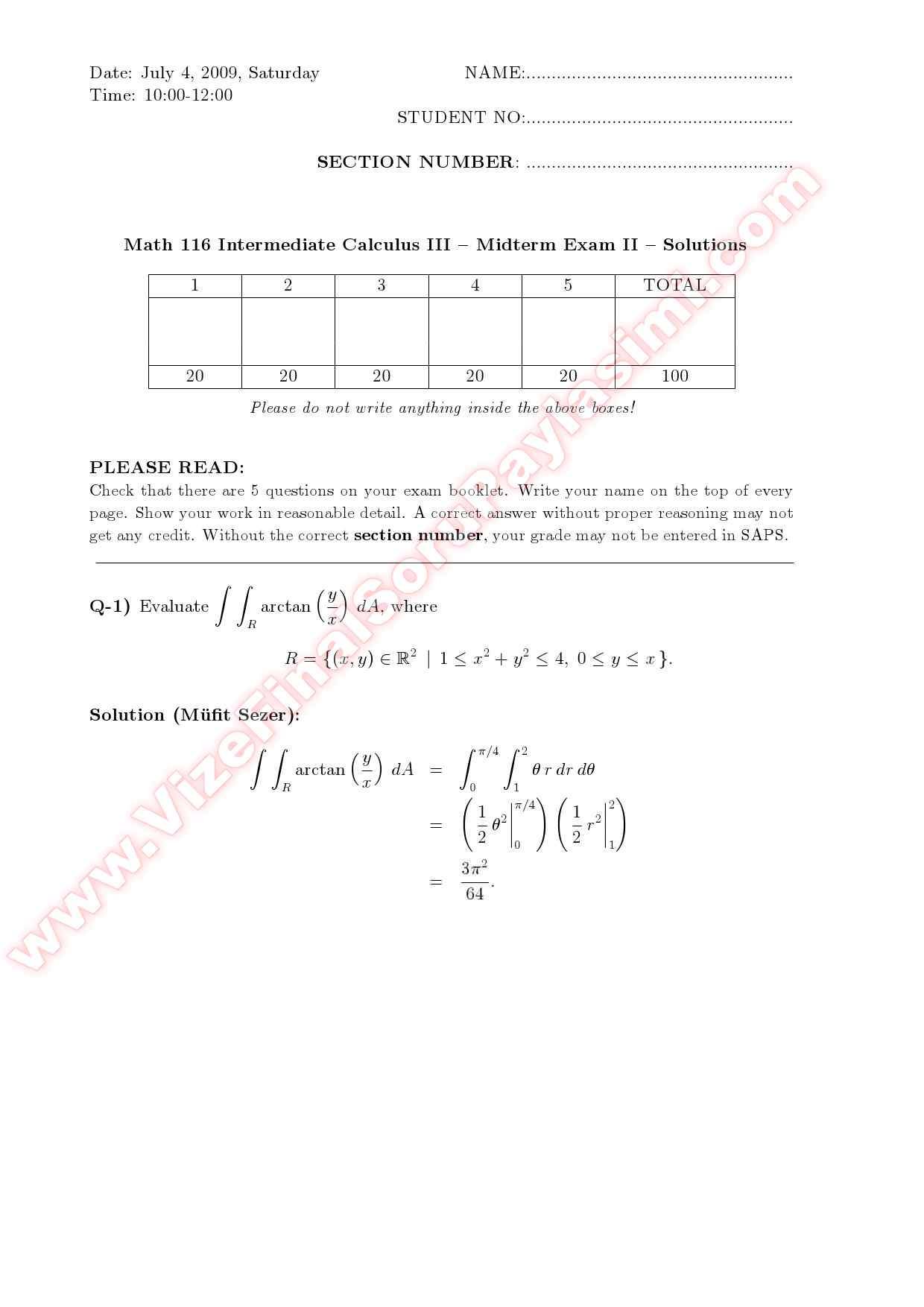 Intermediate Calculus3 final Solutions 2009 GERİ DÖN-
