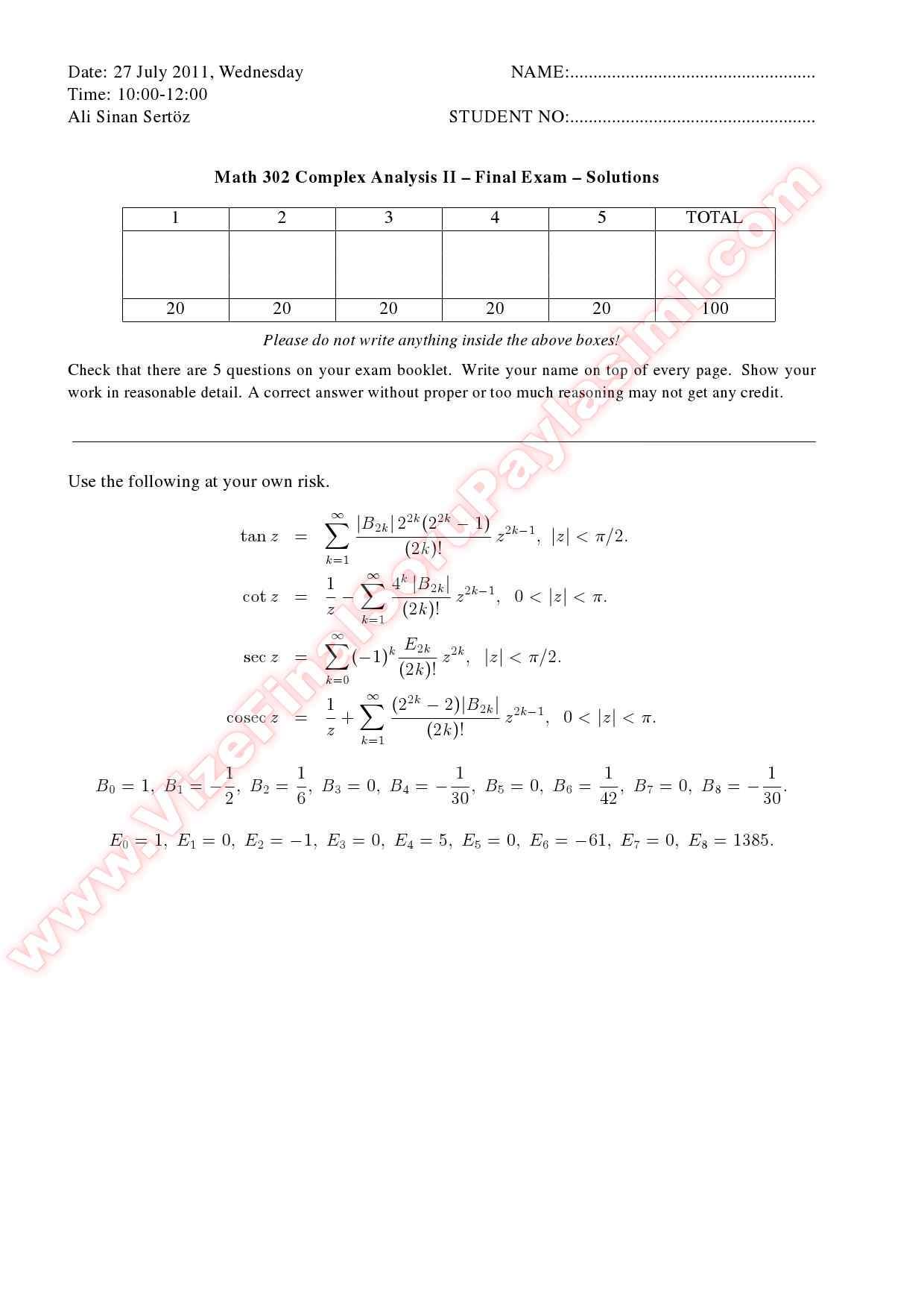 Complex Analysis2 Final Solutions Summer 2011 GERİ DÖN-
