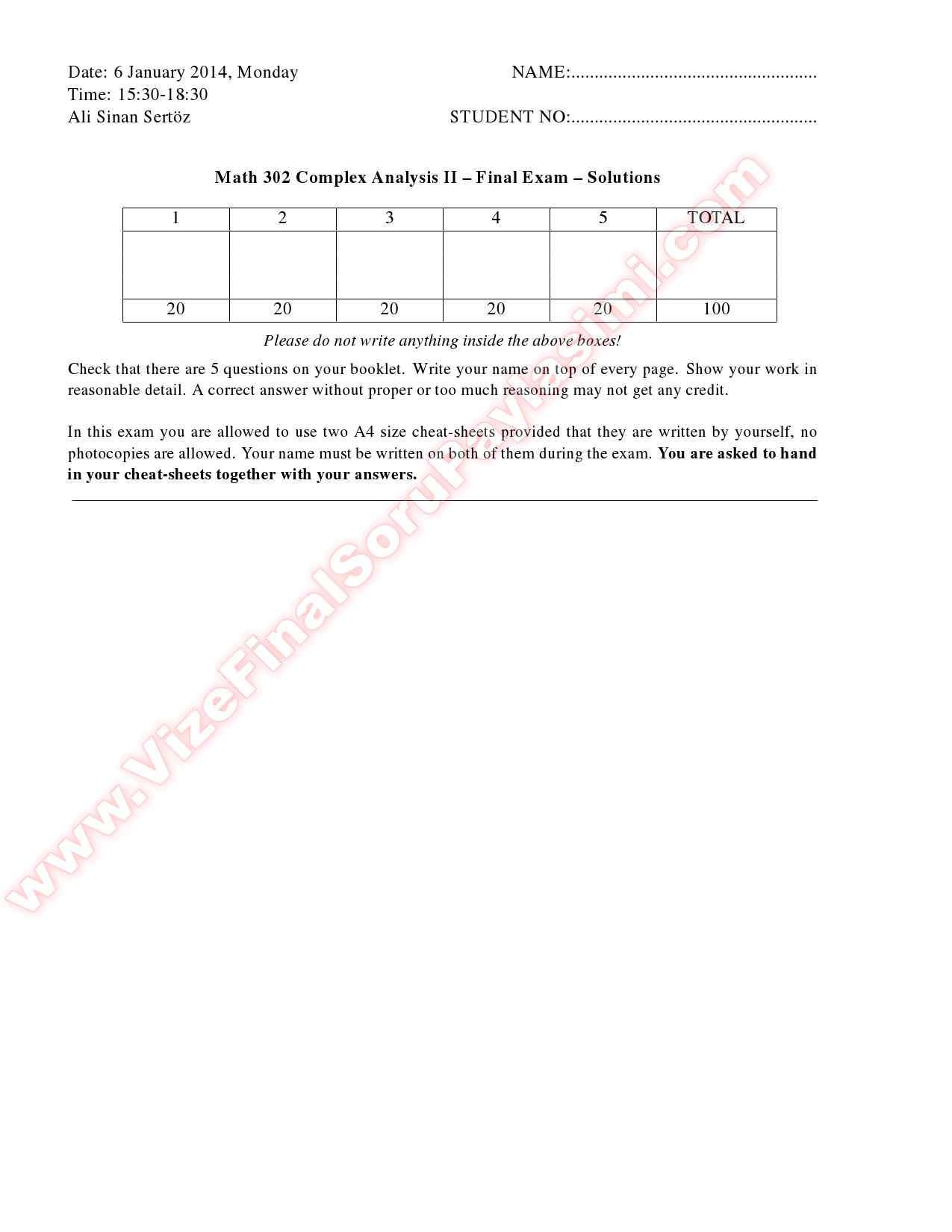 Complex Analysis2 Final Solutions -2013
