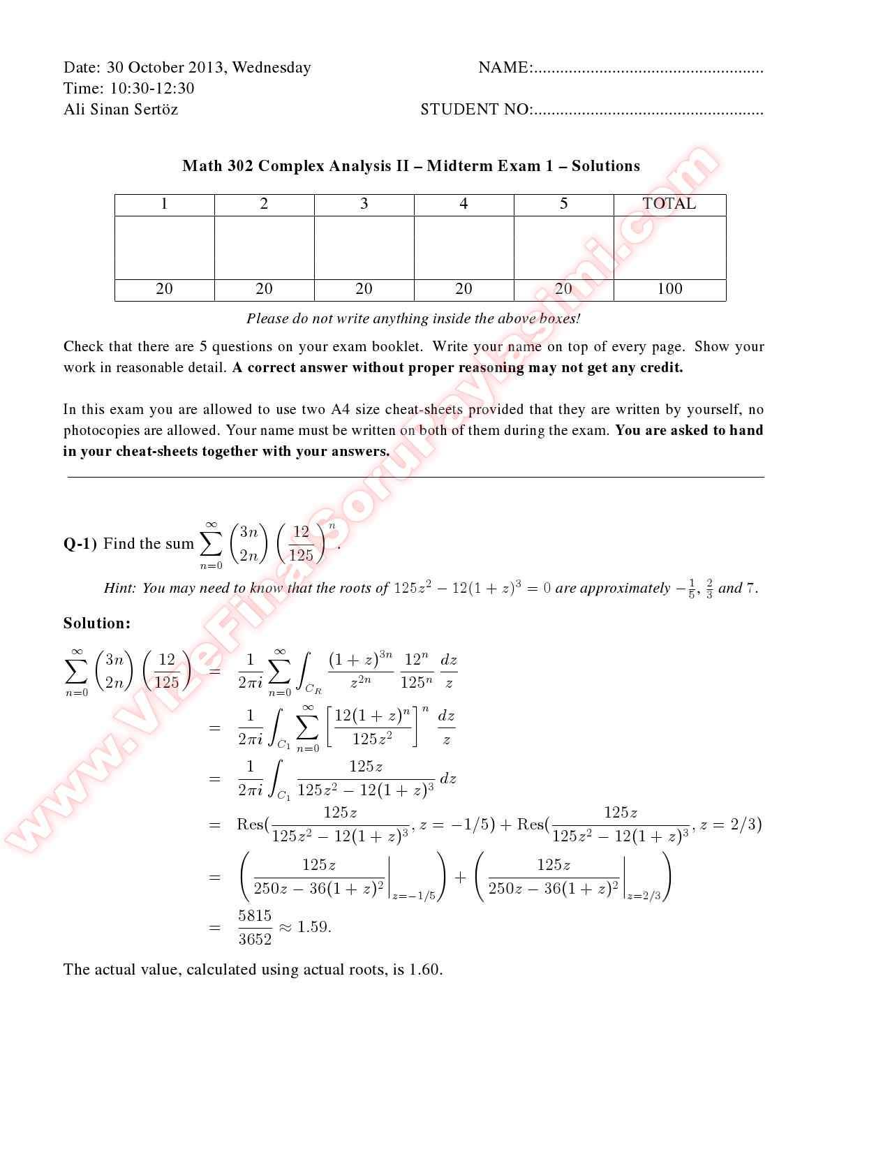 Complex Analysis2 Midterm Solutions -2013