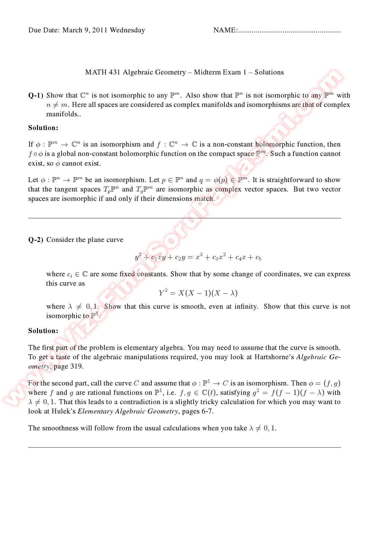 Algebraic Geometry Midterm Solutions -2012 11-07-2015, 14:08