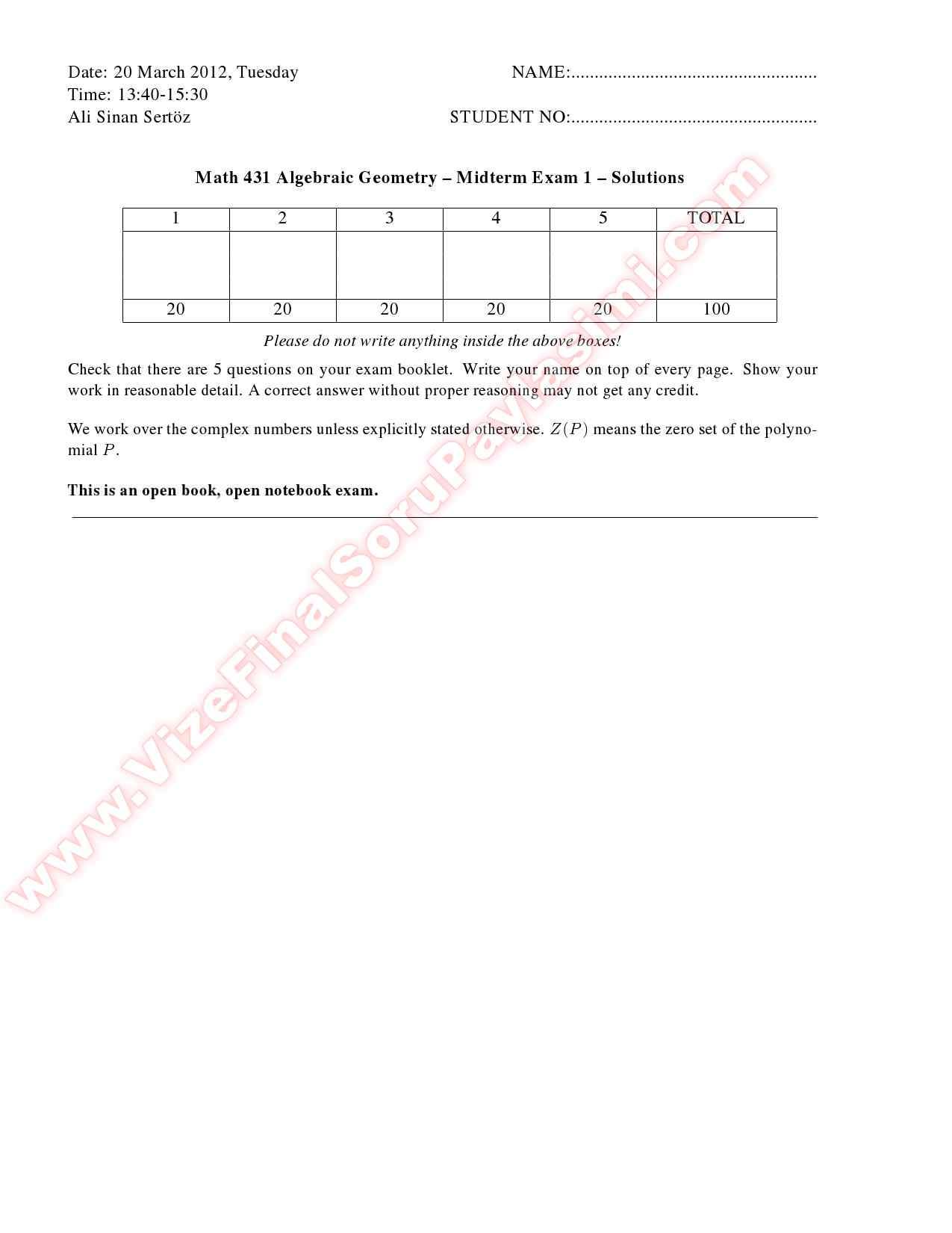 Algebraic Geometry midterm Solutions 2012 GERİ DÖN-