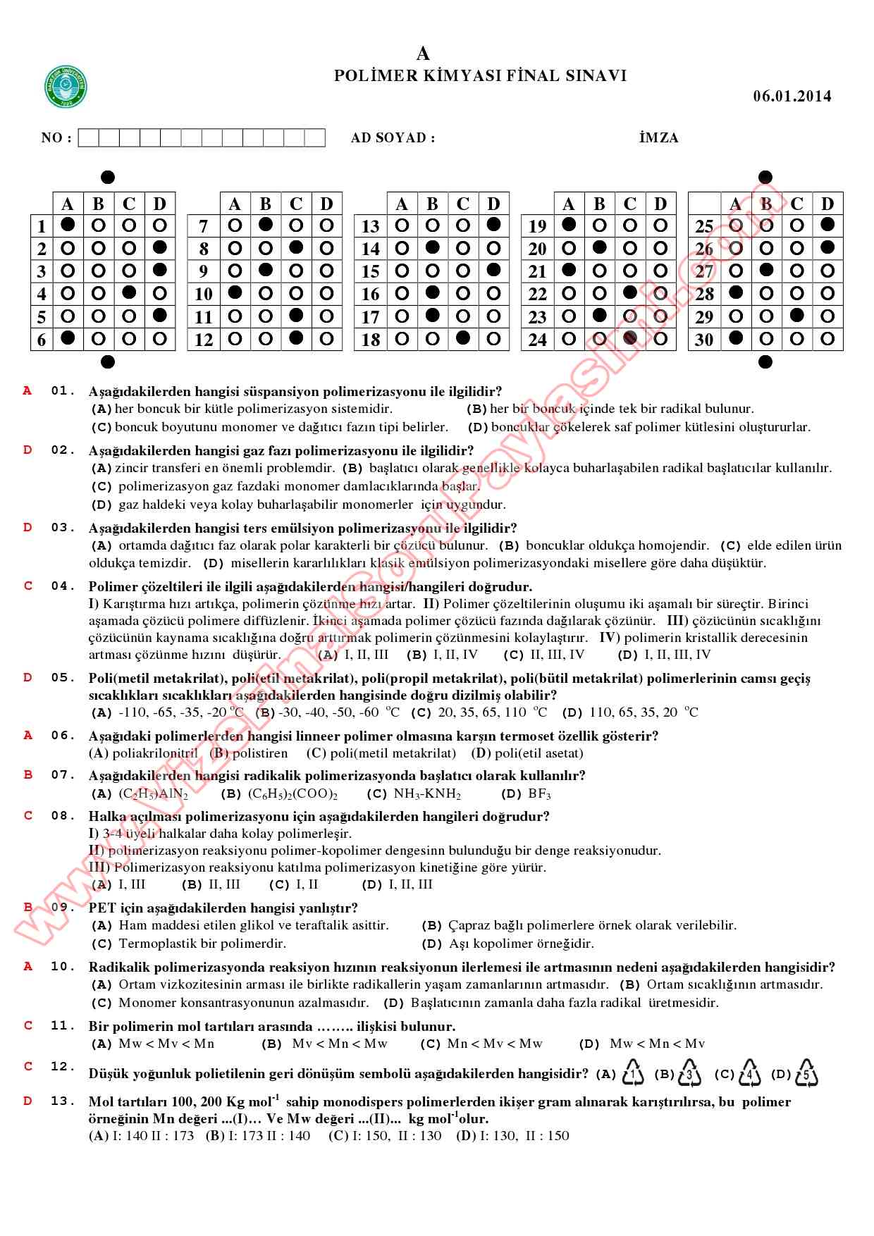 polimer kimyasi final sorulari cevaplari test GERİ DÖN-