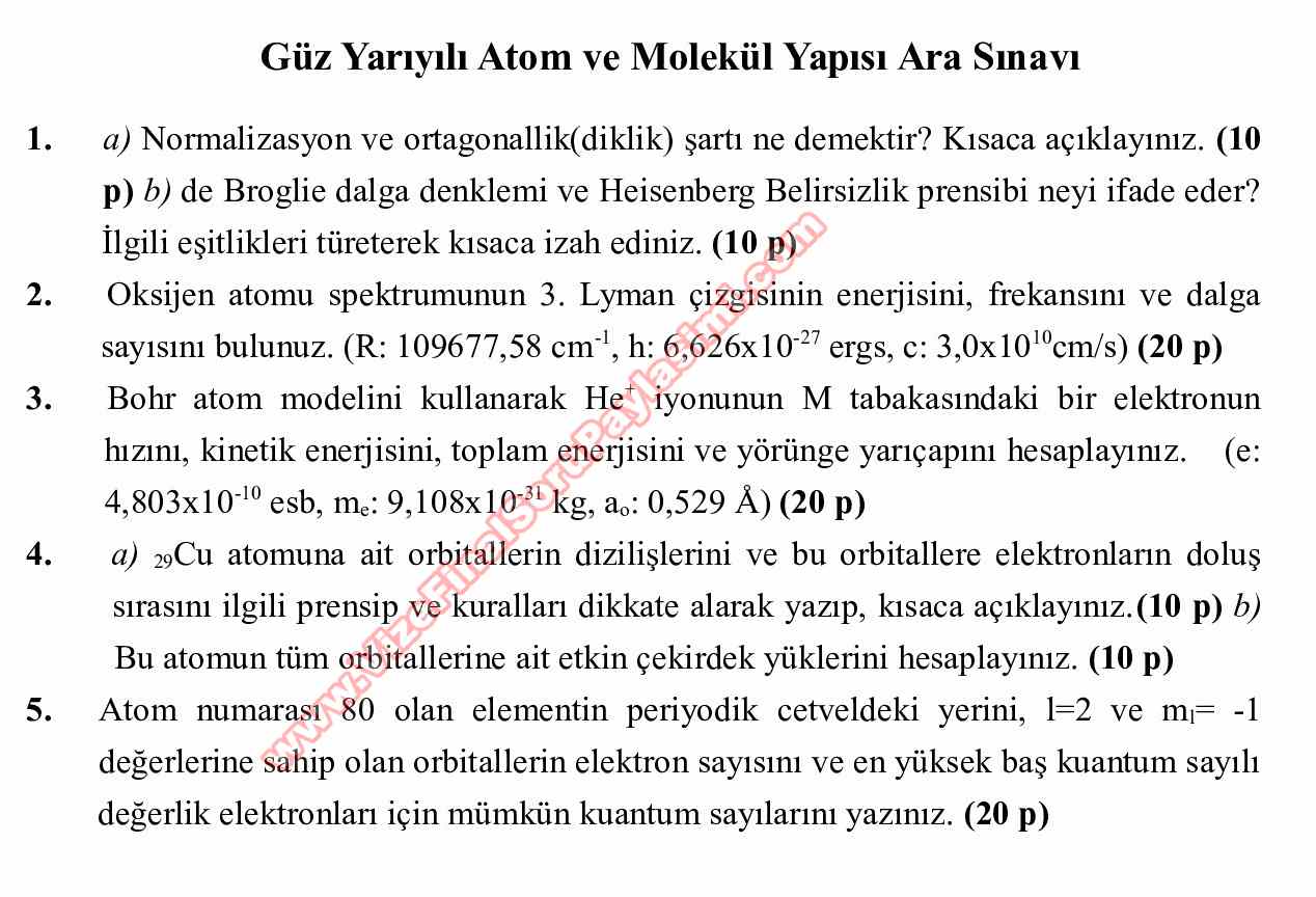 Atom ve Molekül Yapısı Vize Soruları 6-06-2015, 17:16