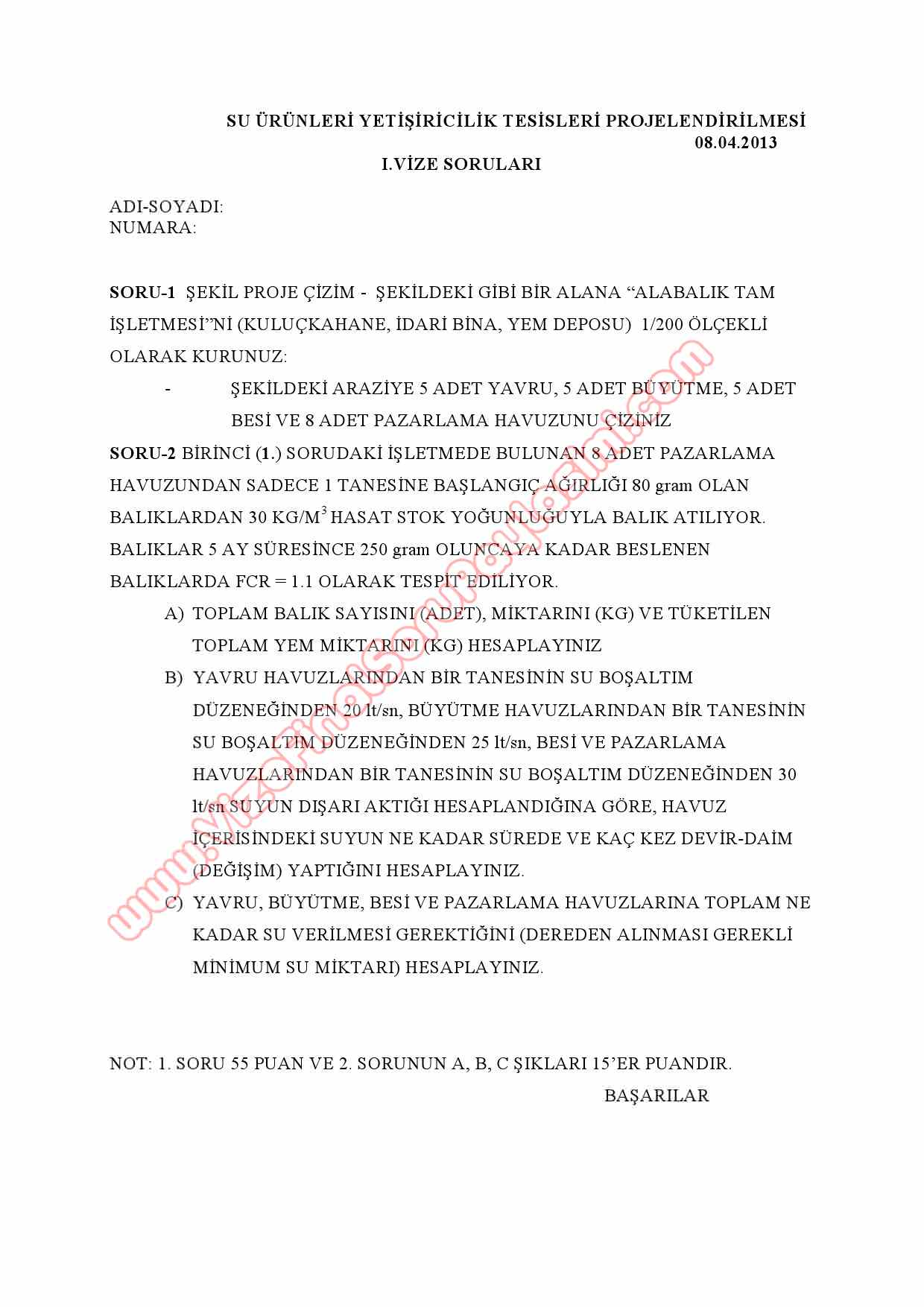Vize ve Final Soruları / Muğla Sıtkı Koçman Üniversitesi / Su Ürünleri Yetiştiricilik Tesisleri Projelendiril
