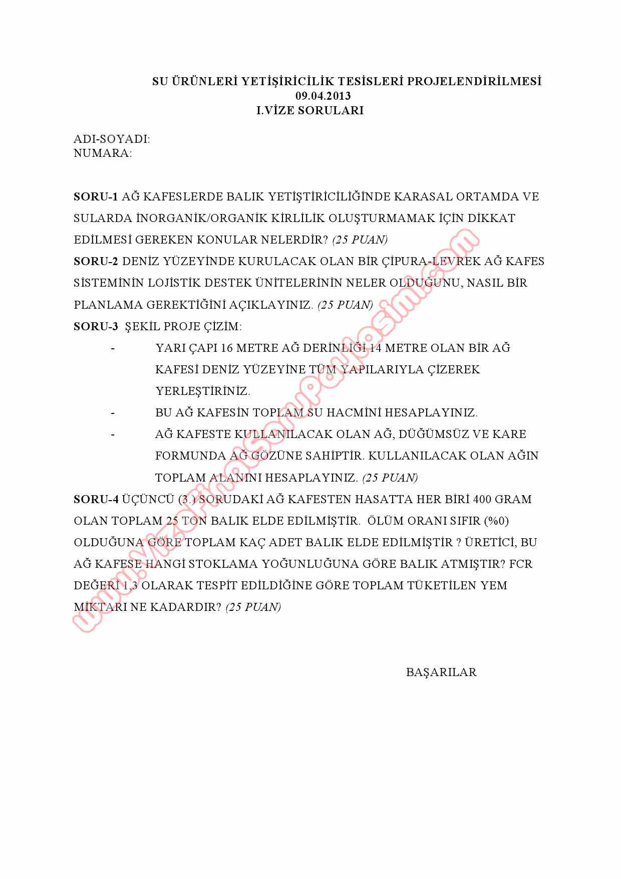 Su Ürünleri Yetiştiricilik Tesisleri Projelendirilmesi Vize Soruları ve Cevapları 31-07-2015, 21:05