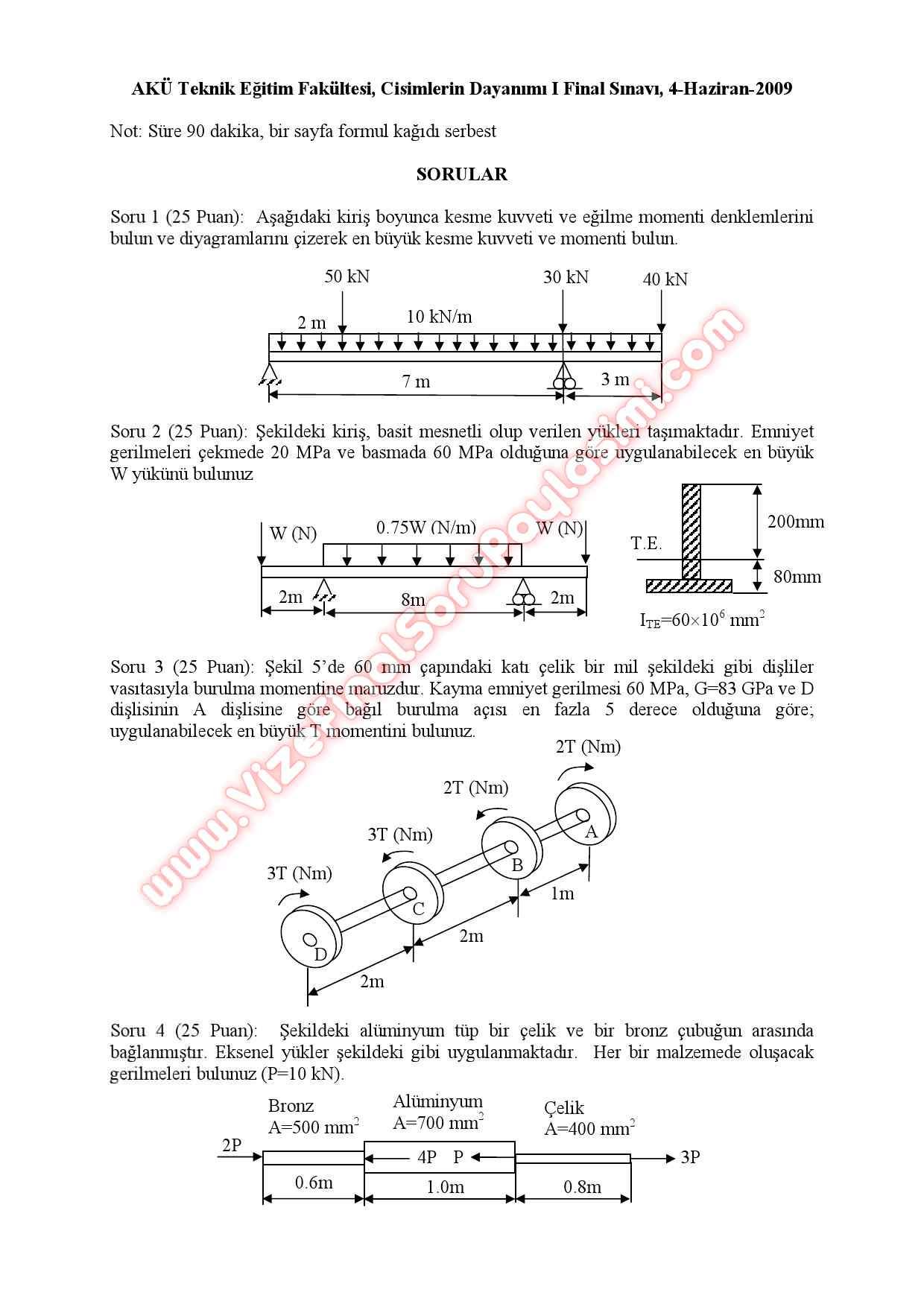 cisimlerin dayanimi1 final sorulari 2009 GERİ DÖN-