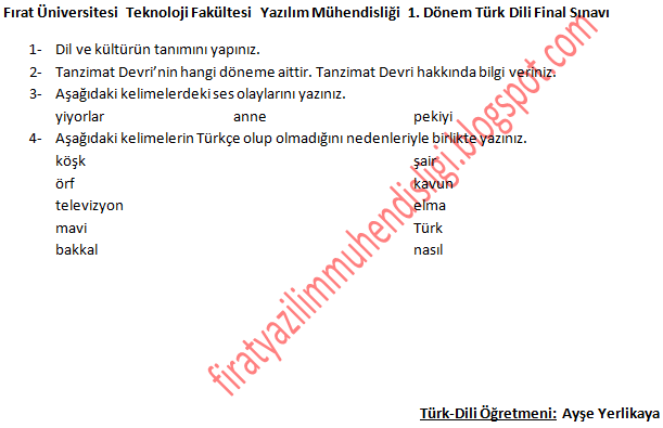 Vize ve Final Soruları / Fırat Üniversitesi / Türk Dili ve Edebiyatı Dersi -1