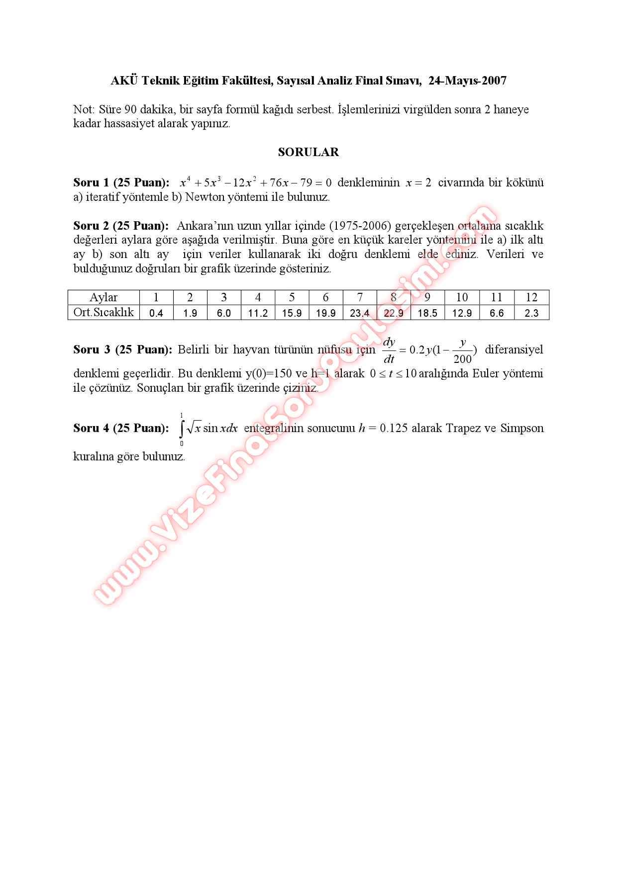 Sayısal Analiz Yaz Okulu Final Soruları Ve cevapları -2007 1-08-2015, 22:20