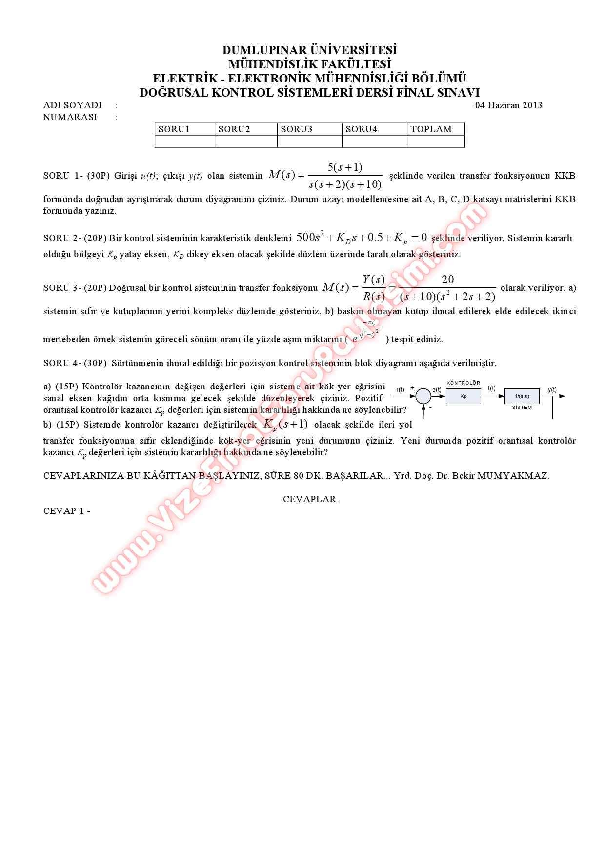dogrusal kontrol sistemleri final sorulari bahar 2013
