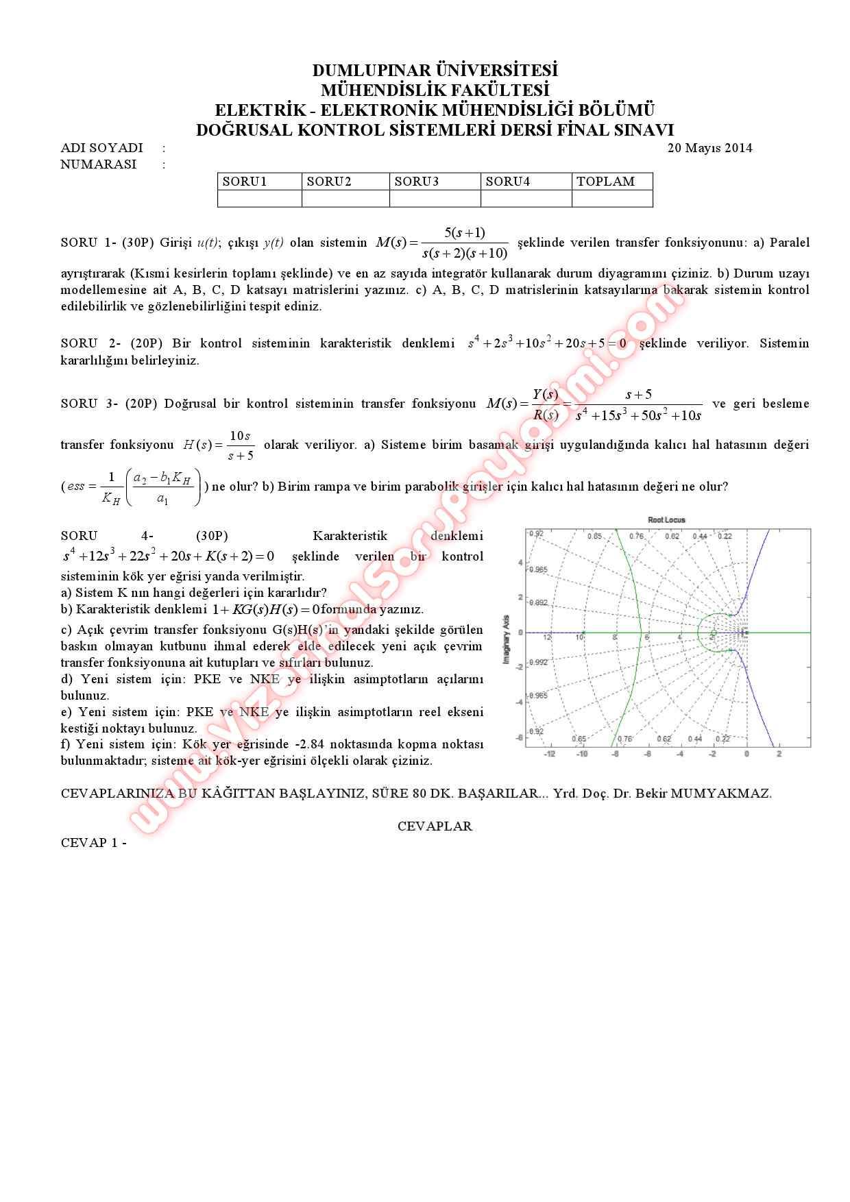 Dogrusal Kontrol Sistemleri Yaz Okulu Final Soruları -2014 1-08-2015, 22:38