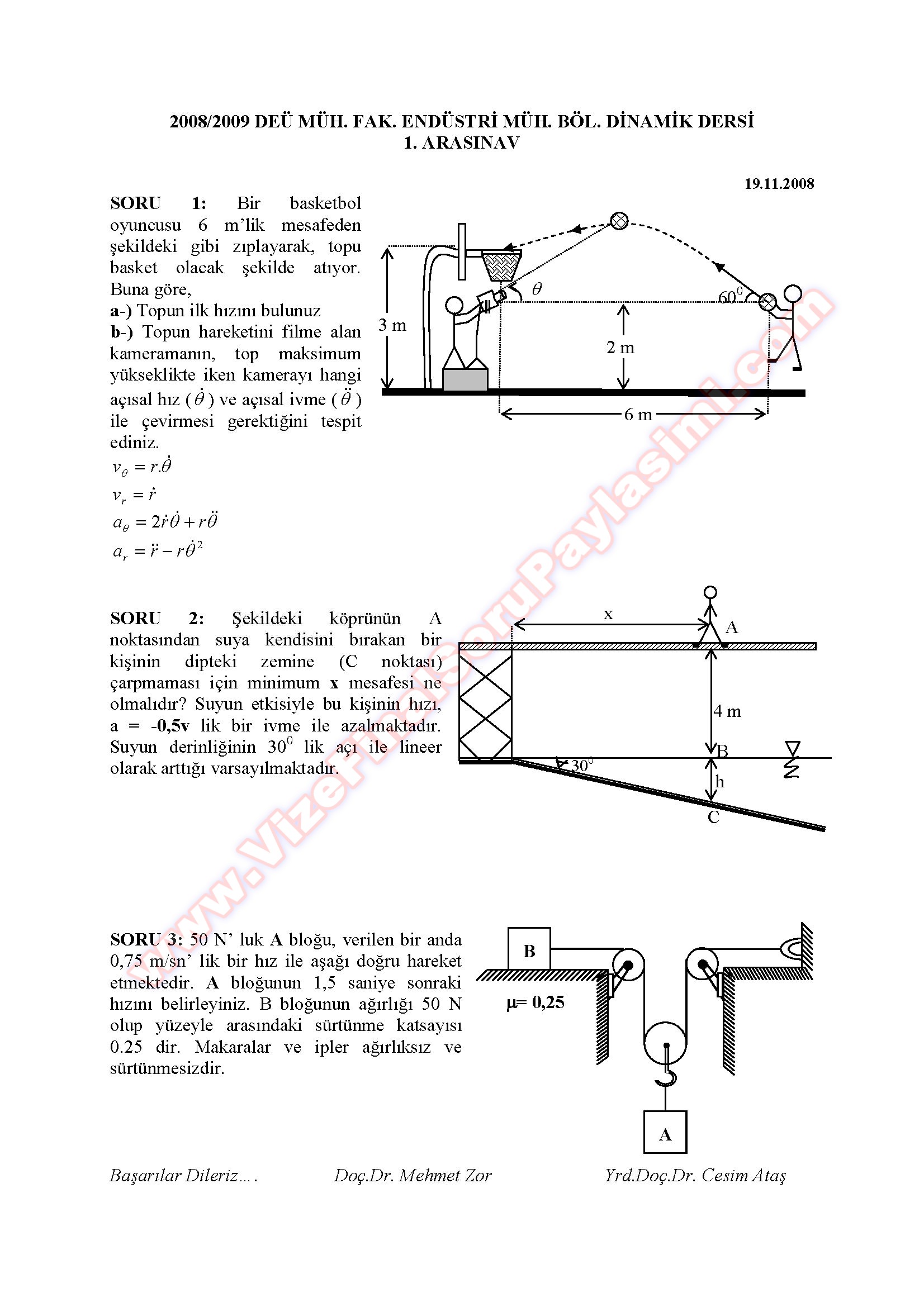 Vize ve Final Soruları / Dokuz Eylül Üniversitesi / Dinamik Dersi