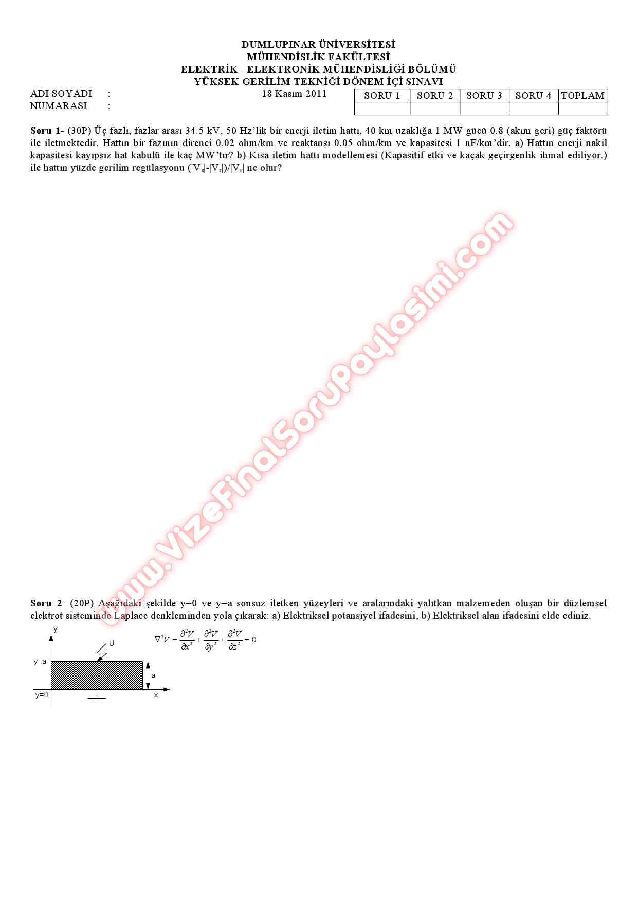 Yüksek Gerilim Tekniği Final Soruları -2011 2-08-2015, 23:09