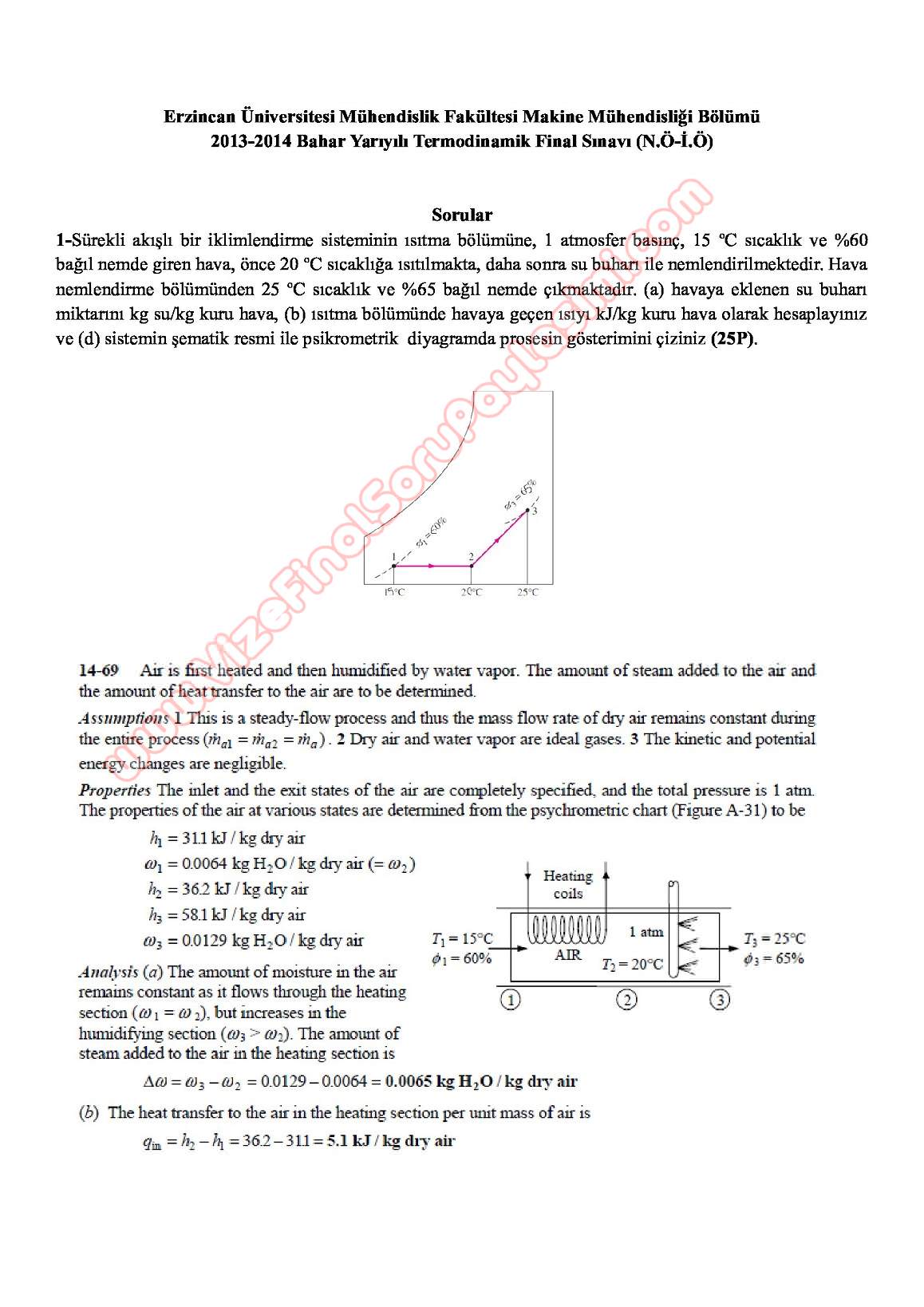 Termodinamik -2 Final Soruları ve Cevapları -2014