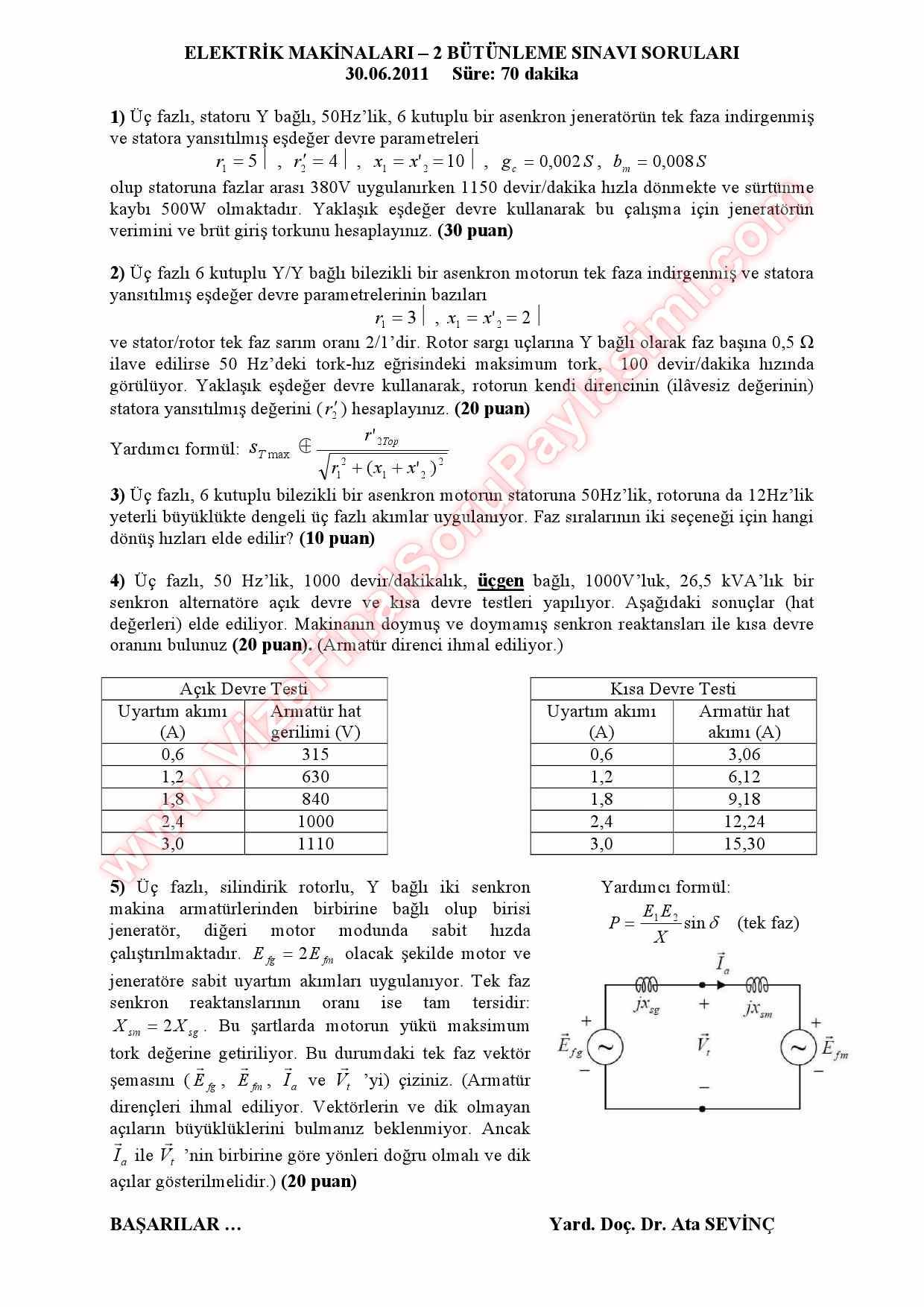 Elektrik makinalari2 butunleme sorulari 2011 GERİ DÖN-