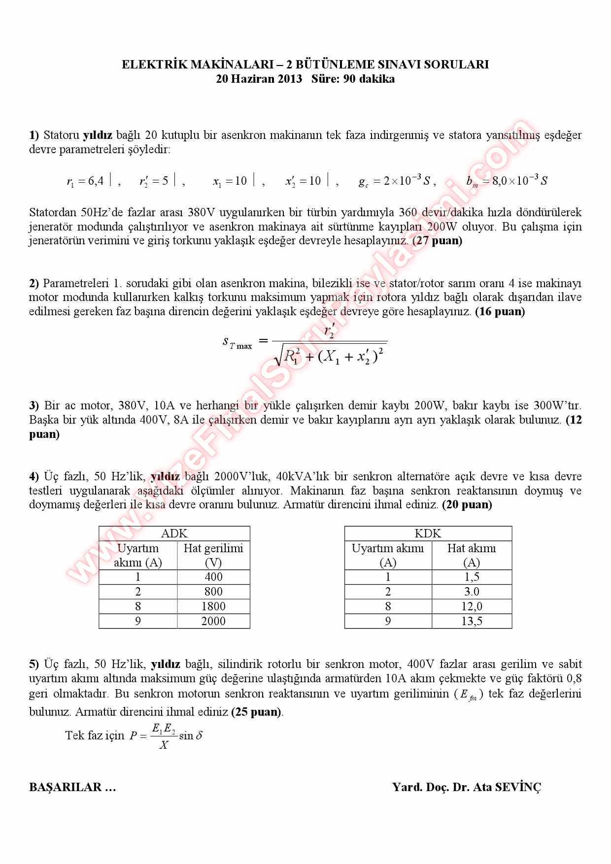 Elektrik Makinaları -2 Vize Soruları Ve Çözümleri -2012 29-08-2015, 23:23
