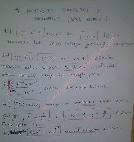 matematik-2 vize sorulari yaz okulu muhendislik fakultesi firat uni GERİ DÖN-