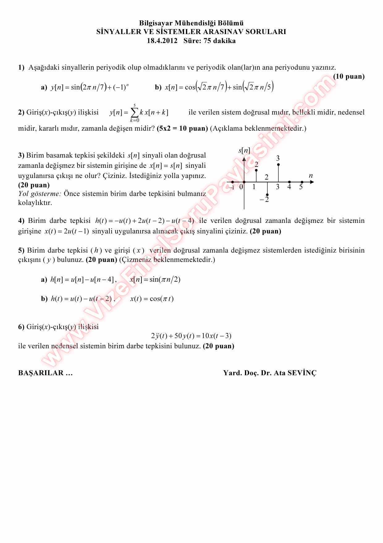 Sinyaller Ve Sistemler Vize Soruları Ve Çözümleri Güz - 2012 30-08-2015, 00:03