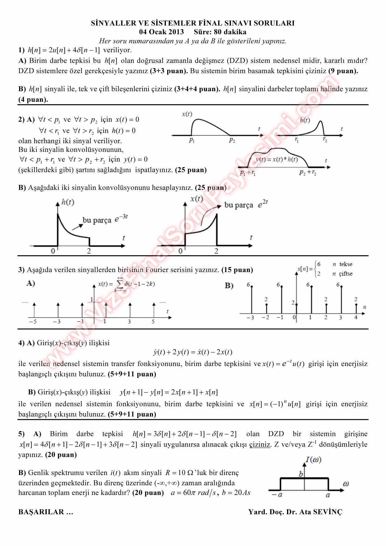 Sinyaller Ve Sistemler Final Soruları Ve Çözümleri - 2013