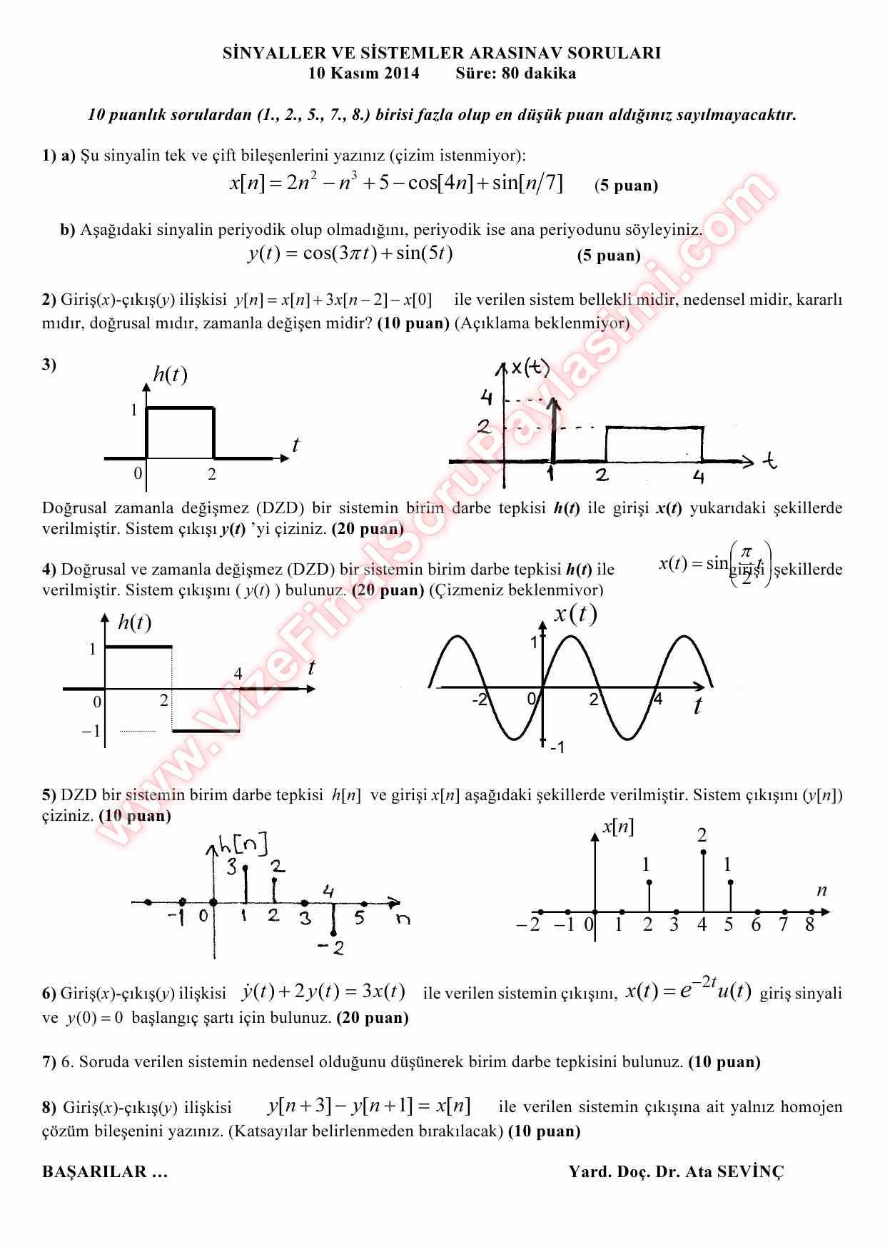 Sinyaller Ve Sistemler Vize Soruları Ve Çözümleri - 2014