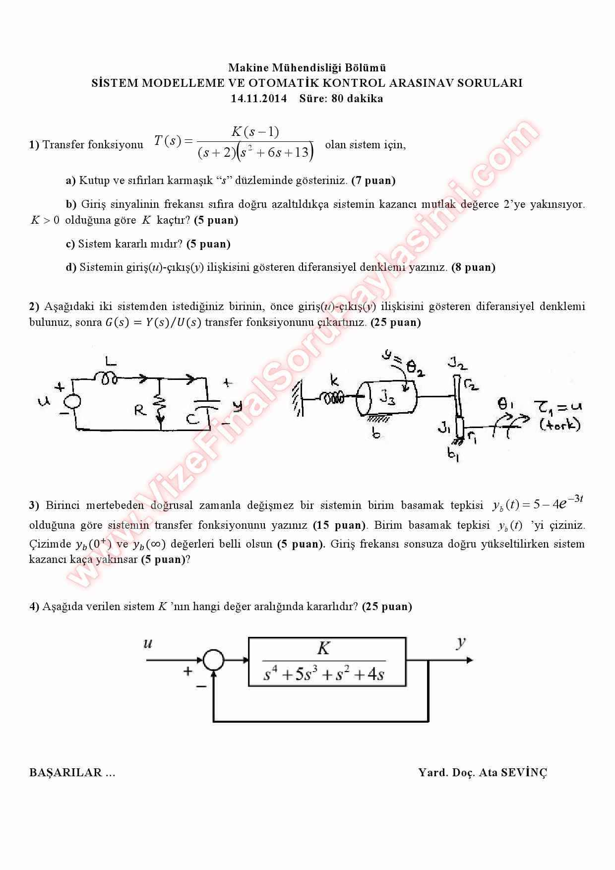 Sistem Modelleme Ve Otomatik Kontrol Vize Soruları Ve Çözümleri - 2015