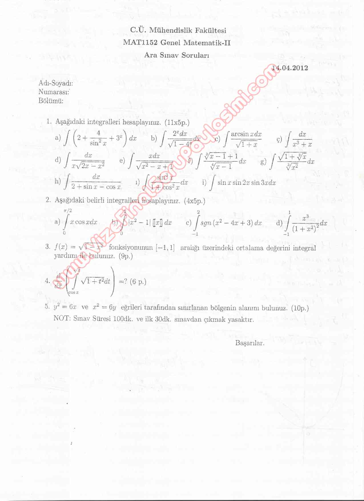 cumhuriyet uni matematik-2 vize sorulari cevaplari cozumleri GERİ DÖN-