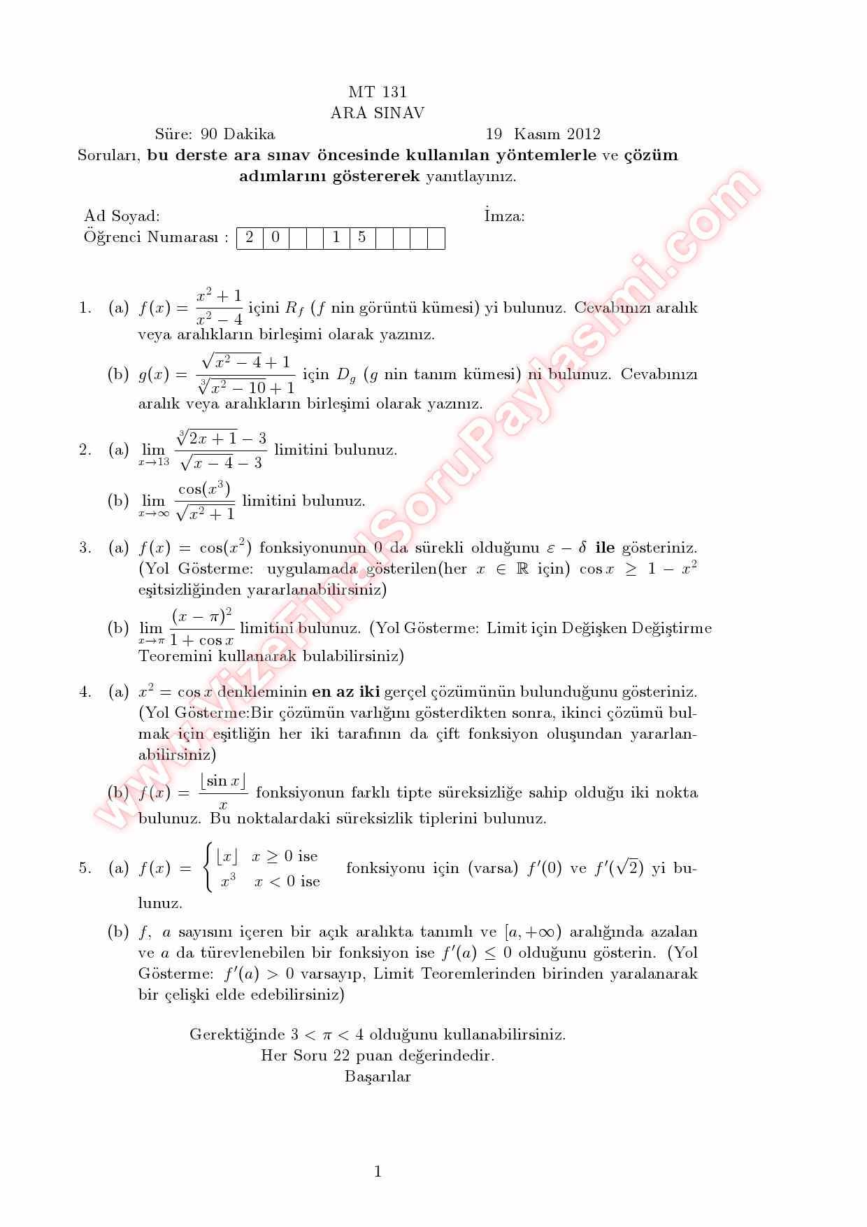 analiz1 vize sorulari cozumleri 2012 GERİ DÖN-