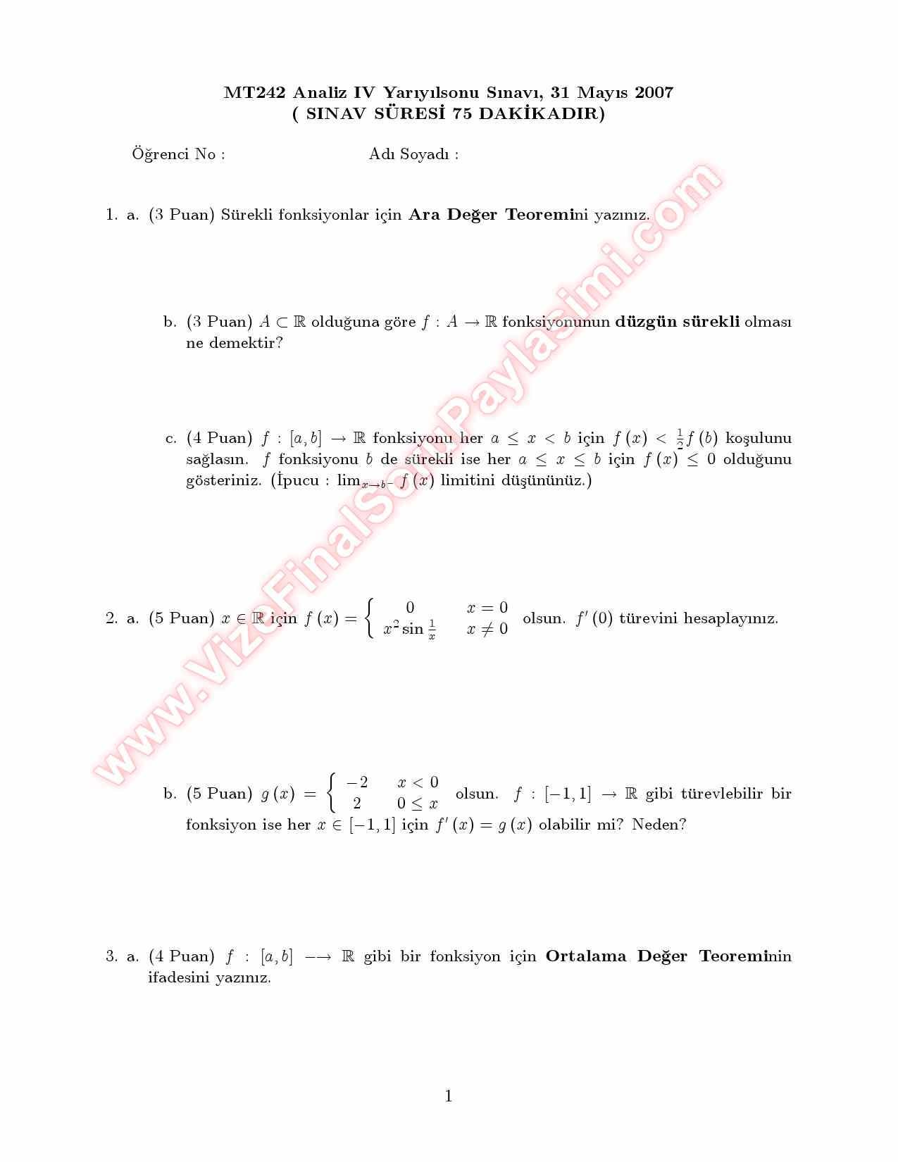 analiz4 final sorulari cozumleri 2007 GERİ DÖN-