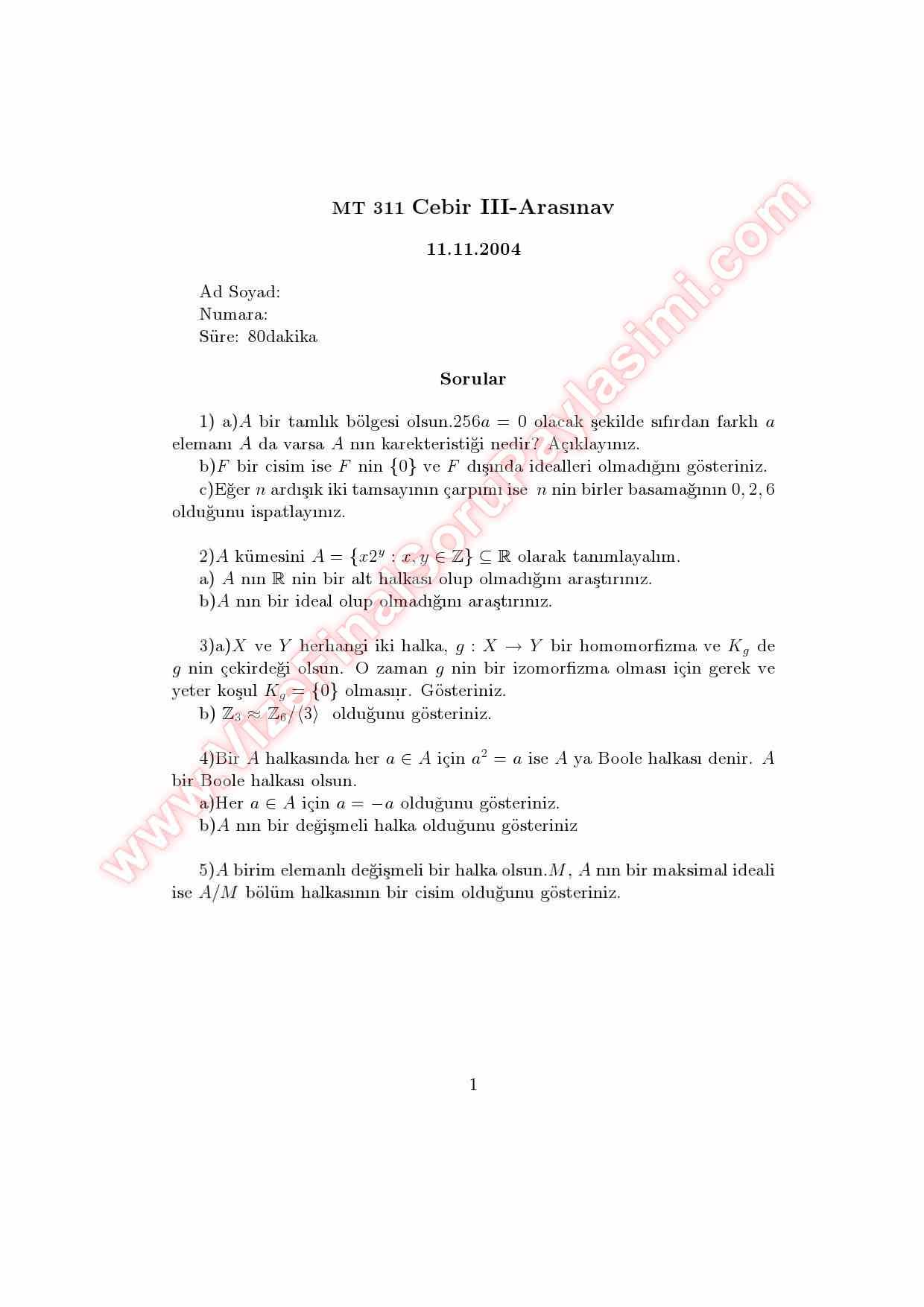 Soyut Cebir Ve Sayılar Teorisi Vize Soruları Ve Cevapları 13-05-2015, 12:59