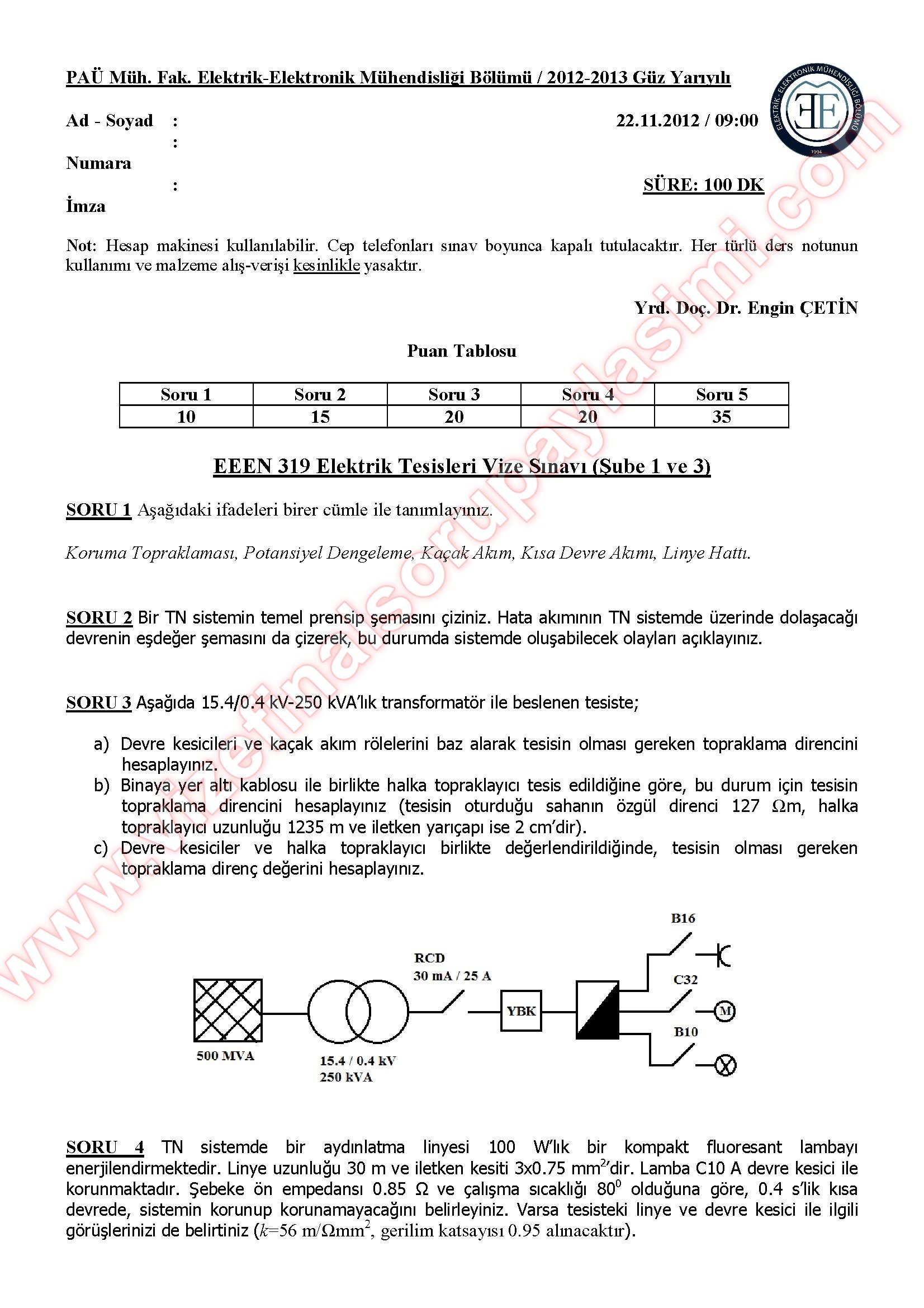 Vize ve Final Soruları / Pamukkale Üniversitesi / Elektrik Tesisleri ve Uygulamaları Dersi