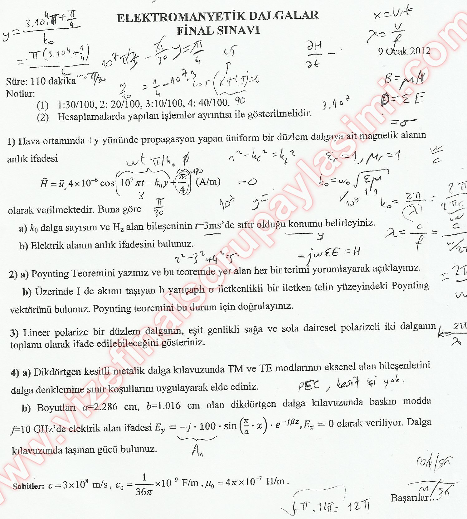 Vize ve Final Soruları / İstanbul Teknik Üniversitesi / Elektromanyetik Dalgalar Teorisi