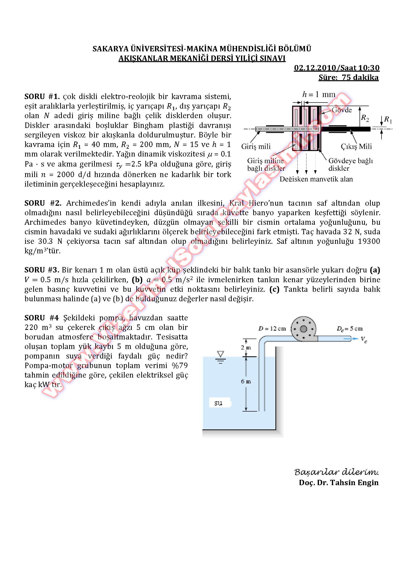 Vize ve Final Soruları / Sakarya Üniversitesi / Akışkanlar Mekaniği